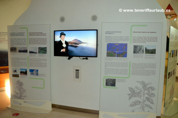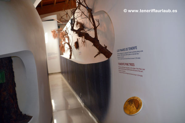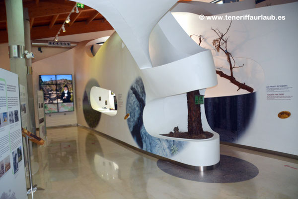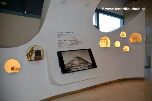 Das Besucherzentrum beherbergt zudem eine Ausstellung, die dazu einlädt, Teneriffa auf zwei besondere Arten kennenzulernen. Zum einen über einen naturkundlichen Pfad, von der Küste bis hinauf zum Gipfel des Teide, der die verschiedenen Landschafts- und Vegetationszonen der Insel veranschaulicht. Zum anderen aus historischer Perspektive, anhand von Berichten berühmter Reisender und Naturforscher, die Teneriffa in vergangenen Jahrhunderten besucht und beschrieben haben.