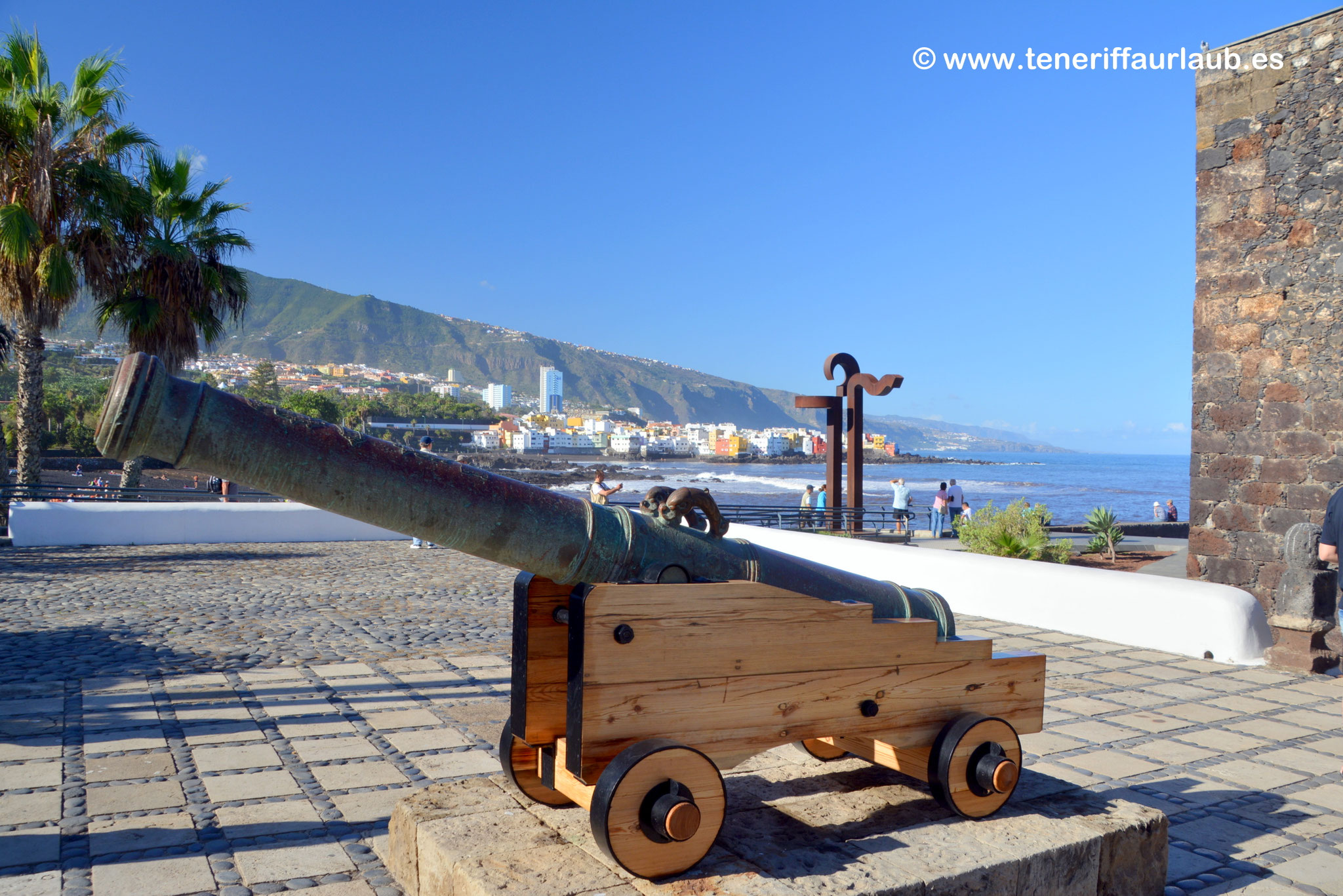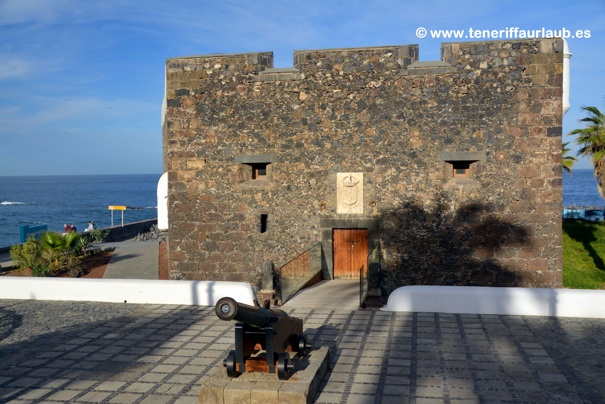 Die Burg bzw, Castillo San Felipe liegt direkt an der Küste des bekannten Strandes dem Playa Jardin in Puerto de la Cruz und ist nicht weit vom Stadtzentrum entfernt. Es war eine von vier Festungen, die früher die Stadt verteidigten. Der Bau des Castillo begann im Jahr 1599 und wurde im Jahr 1604 abgeschlossen und diente seitdem als Verteidigungsbasis gegen mögliche Freibeuter, die am Pier des Hafens Zuflucht suchten.