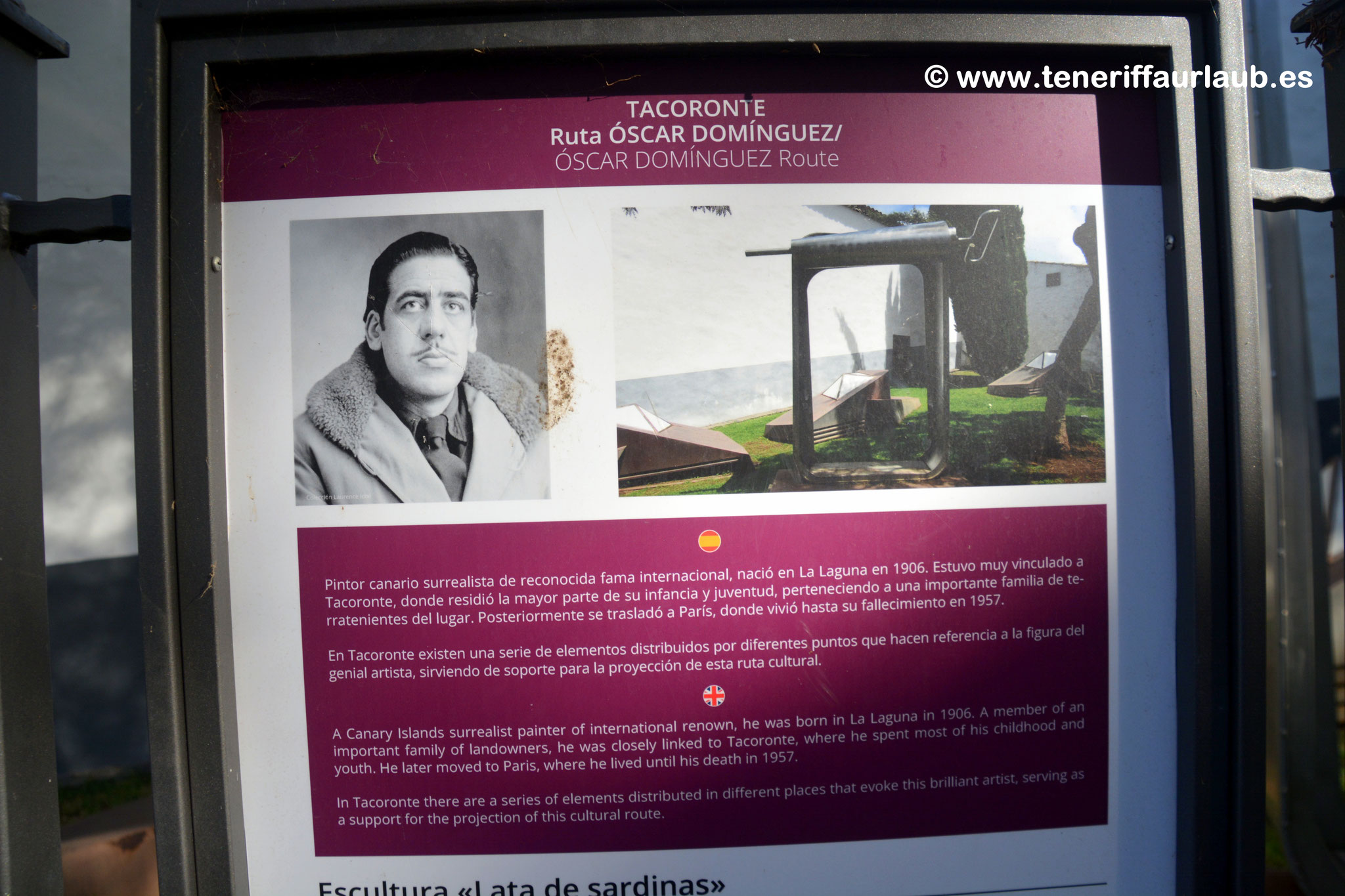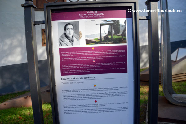 Mitten in Tacoronte, einer malerischen Stadt im Norden von Teneriffa, befindet sich ein Kunstwerk, das Besucher überrascht und begeistert, die „Estatua de la Lata“. Diese überdimensionale, geöffnete Sardinendose ist ein Beispiel für moderne Kunst im öffentlichen Raum und wurde vom baskischen Künstler Julio Nieto geschaffen. Die Skulptur entstand 2006 als Hommage an den surrealistischen Maler Óscar Domínguez und verbindet Humor, Kreativität und überraschende Perspektiven auf Alltagsgegenstände.