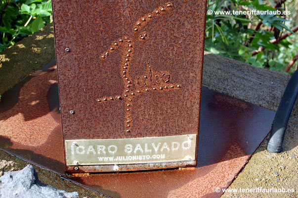 Der Schöpfer der Skulptur, Julio Nieto, wurde 1964 in Bilbao geboren und lebt seit vielen Jahren auf den Kanarischen Inseln. Seine Arbeiten finden sich an zahlreichen öffentlichen Plätzen, besonders auf Teneriffa und Gran Canaria. Julio Nieto ist bekannt für seine Fähigkeit, Schwere und Leichtigkeit in einem Werk zu vereinen. Er arbeitet überwiegend mit Edelstahl und Bronze, wobei er menschliche Figuren in dynamischen Posen formt. Seine Skulpturen wirken trotz ihres massiven Materials beinahe schwerelos, was er durch filigrane Linienführungen, offene Strukturen und eine sorgfältige Oberflächenbearbeitung erreicht. Mit Ícaro Salvado hat Julio Nieto ein besonders symbolträchtiges Motiv gewählt. Der Titel bedeutet wörtlich „Geretteter Ikarus“, eine Umkehrung des klassischen Mythos, in dem Ikarus durch seine Hybris dem Sonnenflug zum Opfer fällt. Nietos Interpretation zeigt den Moment der Befreiung und des Triumphs, nicht des Sturzes.