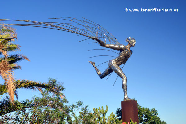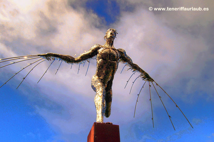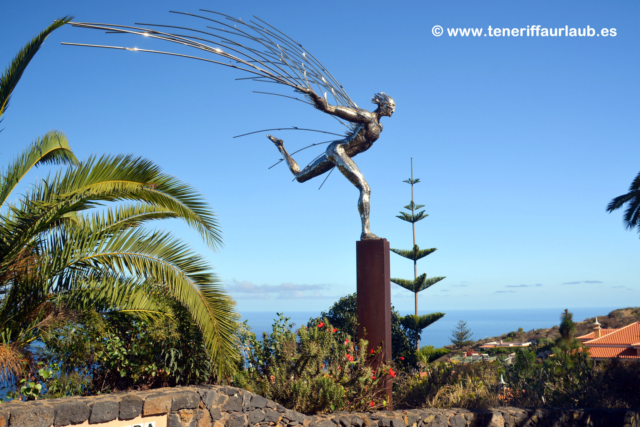 Wer im Norden der Insel Teneriffa unterwegs ist, stößt unweigerlich auf eines der schönsten und außergewöhnlichsten modernen Kunstwerke der Insel. Die Skulptur Ícaro Salvado des baskischen Künstlers Julio Nieto, der seit vielen Jahren in La Oroatva lebt. Die eindrucksvolle Figur erhebt sich in der Gemeinde La Matanza de Acentejo, direkt an einer Verbindungstraße unweit der Nordautobahn TF-5, und scheint mit weit ausgebreiteten, filigranen Flügeln dem Himmel entgegen zu schweben. Ihre glänzende Metalloberfläche fängt das Sonnenlicht ein, sodass sie schon von weitem sichtbar ist und den Blick der Vorbeifahrenden magisch auf sich zieht.