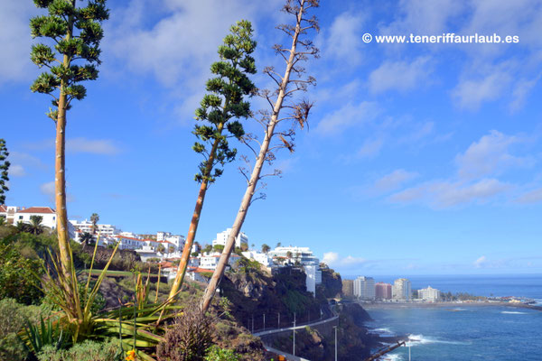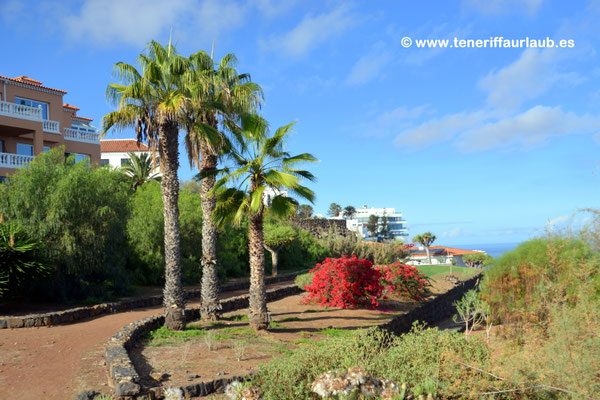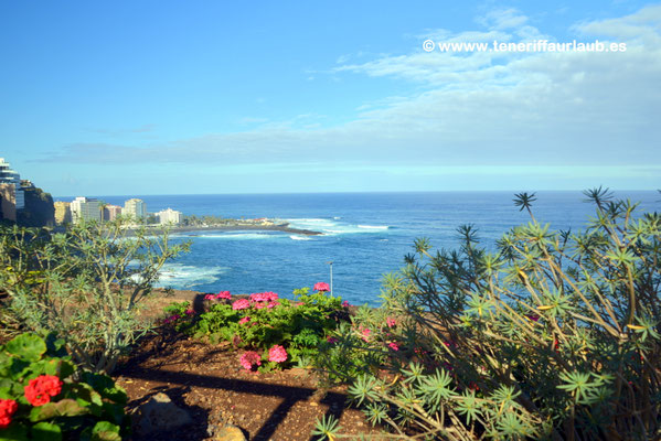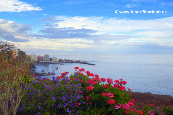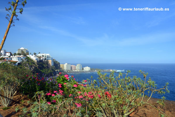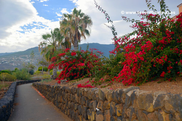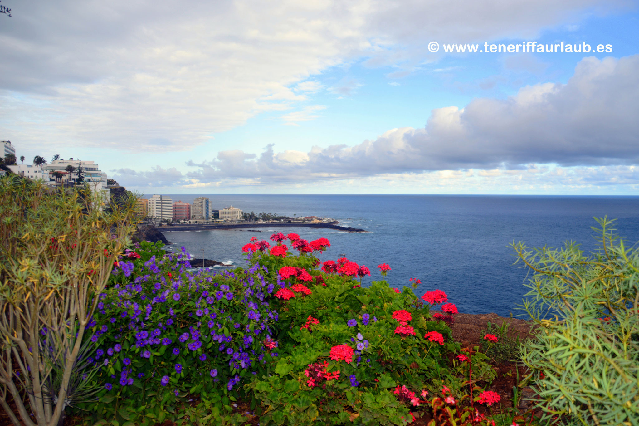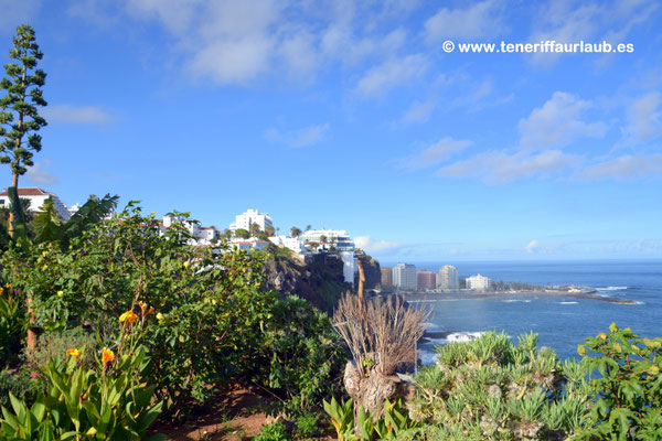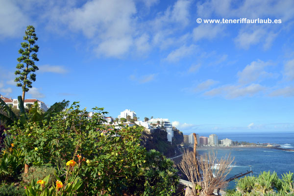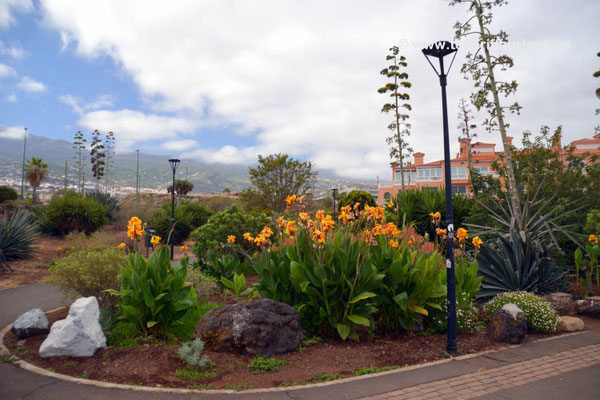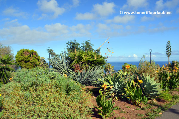 Im Jardín de la Costa finden sich zahlreiche Pflanzenarten, die typisch für subtropische Küstenregionen sind. Von hohen Palmen über blühende Sträucher bis hin zu dekorativen Bäumen wird die Vielfalt der Flora Teneriffas deutlich. Die Wege sind so angelegt, dass Besucher aus verschiedenen Perspektiven den Blick auf das Meer und die Stadt genießen können. Kleine Blumenbeete, schattige Sitzplätze und liebevoll angelegte Grünflächen schaffen eine Oase der Ruhe mitten in Puerto de la Cruz. Besonders im Frühling und Sommer zeigt der Garten seine volle Farbenpracht.