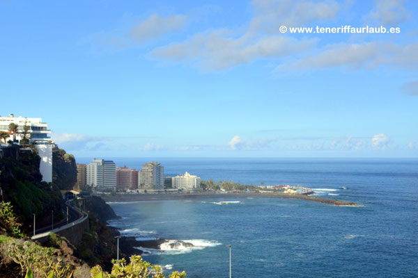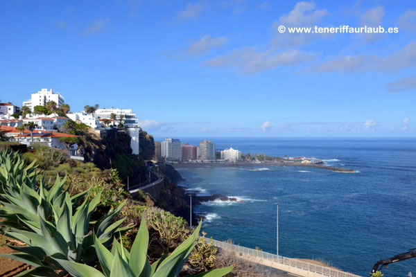 Der Jardín de la Costa befindet sich im charmanten Stadtteil La Paz von Puerto de la Cruz im Norden von Teneriffa. Die Lage ist besonders attraktiv, da der Garten einen direkten Blick auf das berühmte Meeresschwimmbad Lago Martiánez bietet, das von dem kanarischen Künstler César Manrique gestaltet wurde. Von hier aus lassen sich die sanften Wellen des Atlantiks und die architektonische Harmonie der Promenade wunderbar beobachten. Die Umgebung ist lebendig, gleichzeitig jedoch ruhig genug, um einen entspannten Spaziergang durch den Garten zu genießen. Fußläufig erreichbar sind zahlreiche Cafés, Restaurants und kleine Boutiquen, die den Besuch abrunden.