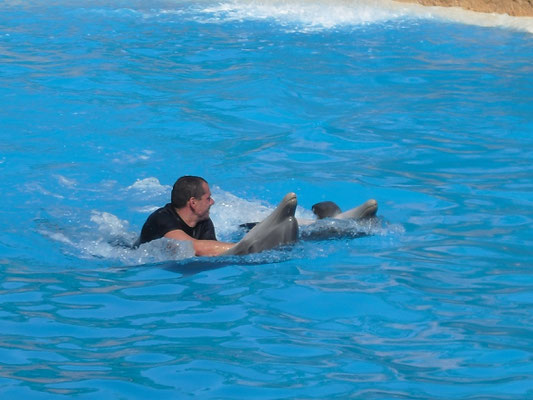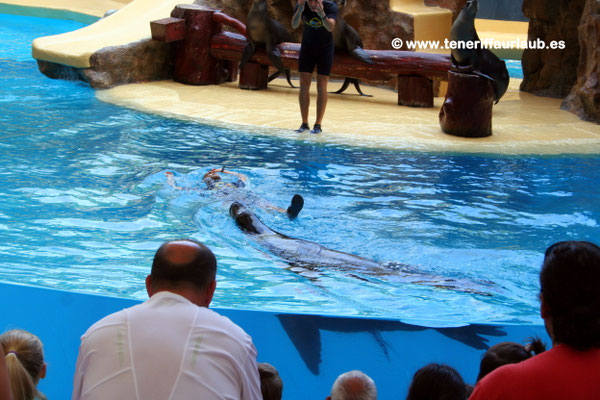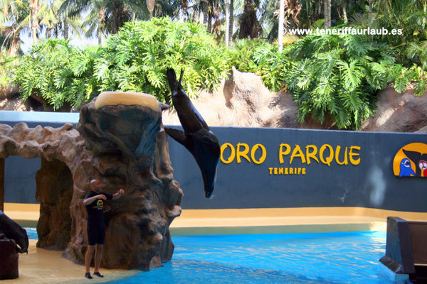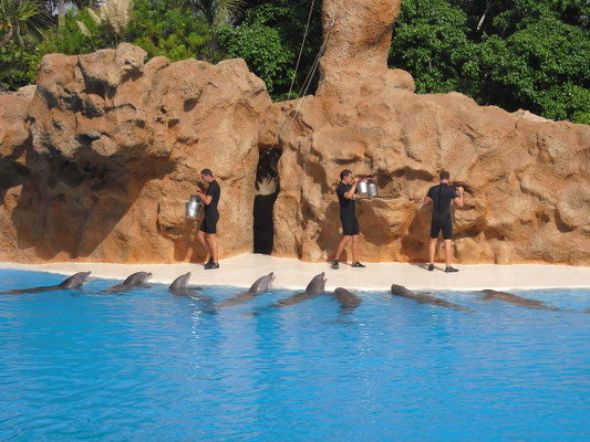 Ein ganz besonderes Highlight des Loro Parque ist das Delfinarium, in dem die intelligenten Meeressäuger aus dem Golf von Mexiko ihre ganze Vielseitigkeit zeigen. Neben beeindruckender Artistik sorgen die Delfine immer wieder mit charmanten Streichen und Schabernack für beste Unterhaltung und große Begeisterung beim Publikum. Das Delfinbecken ist mit einem Fassungsvermögen von 7 Millionen Litern das größte in Europa. Es besteht aus mehreren miteinander verbundenen Becken, drei Aufenthaltspools, einem Panoramapool und dem eigentlichen Showpool, die alle kontinuierlich mit frischem Meerwasser versorgt werden. Das Delfinarium bietet Platz für bis zu 1.800 Zuschauer und verwandelt jede Vorstellung in eine mitreißende Show voller unvergesslicher Momente, ein Muss für Besucher jeden Alters.