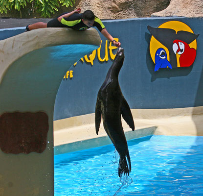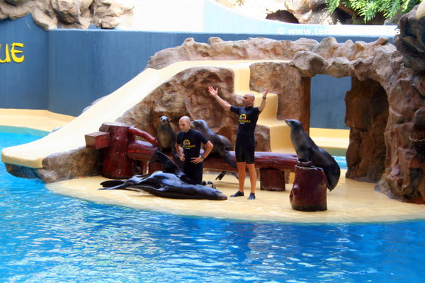 Ein weiteres Highlight erwartet Besucher unter einer futuristischen Dachkonstruktion, die neugierig macht und hält, was sie verspricht. In der Seelöwen-Show präsentieren sich die kalifornischen Seelöwen als wahre Künstler der Meere. Mit verblüffender Eleganz, Witz und Präzision begeistern sie das Publikum durch kunstvolle Sprünge, Balanceakte und lebendige Interaktion mit ihren Trainern. Das Besondere, die Darbietungen lassen sich nicht nur von der Tribüne aus bewundern, dank großflächiger Klarsichtpanele ist das 1.200.000 Liter Meerwasser fassende Becken auch unter Wasser einsehbar. So erleben Besucher die beeindruckenden Tiere aus einer ganz neuen, faszinierenden Perspektive, ein unvergessliches Schauspiel für Groß und Klein.