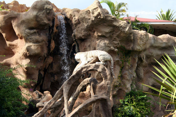 Auch die Schimpansen des Loro Parque genießen heute ein artgerechtes und abwechslungsreiches Leben und das unter besonderen Umständen. In den 1980er-Jahren wurden mehrere Tiere von Straßenfotografen übernommen, bei denen sie in jungen Jahren als Fotomotive dienten. Doch sobald sie dem Jungtieralter entwachsen waren und für diesen fragwürdigen Zweck nicht mehr einsetzbar, fanden sie im Loro Parque ein dauerhaftes und sicheres Zuhause. Heute erfreuen sie sich an ihrem rund 1.500 m² großen Gehege, das mit Wasserfall, Teichen und künstlichen Felsformationen naturnah gestaltet ist. Die imposante Felswand wurde in aufwändiger Handarbeit modelliert und ist eine Nachbildung der markanten Gesteinslandschaften aus dem Süden Teneriffas. Mit viel Bewegungsfreiraum, Beschäftigungsmöglichkeiten und sozialem Kontakt bietet der Park den Schimpansen eine Umgebung, in der sie sich, ganz im Sinne des Namens – tierisch wohlfühlen.