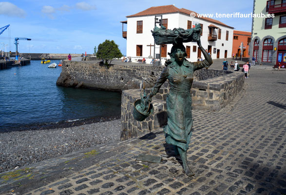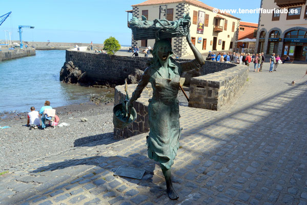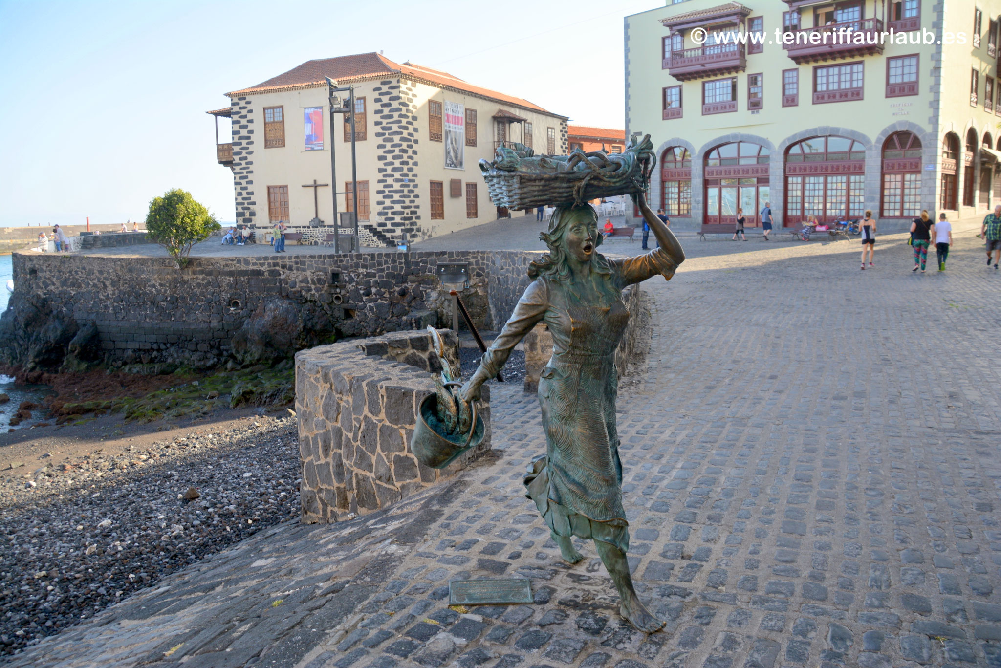 Die Statue ist eine Hommage an die Frauen der Fischergemeinden, die über Jahrhunderte hinweg unverzichtbare Arbeit leisteten. Während die Männer mit den kleinen Holzbooten aufs Meer hinausfuhren, übernahmen die Frauen oft die Weiterverarbeitung und den Verkauf des Fangs. Sie balancierten schwere Körbe voller Fisch auf ihren Köpfen, zogen durch die Straßen und lieferten die Ware an Restaurants, Märkte und Familien aus. Dieser Beruf war körperlich fordernd, gesellschaftlich wenig gesehen und dennoch ein zentraler Bestandteil des lokalen Lebens. Das Denkmal erinnert an diesen wichtigen wirtschaftlichen Beitrag und macht zugleich deutlich, wie eng die Identität von Puerto de la Cruz mit der Fischerei verwoben ist. Es ist ein Ort, an dem traditionelles Wissen, harte Arbeit und familiäre Verbundenheit gewürdigt werden.