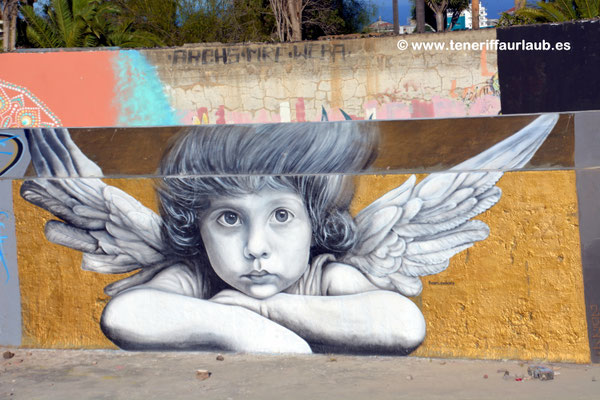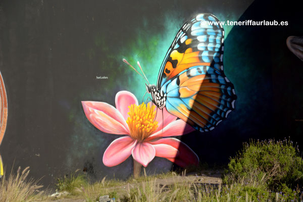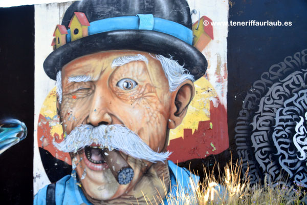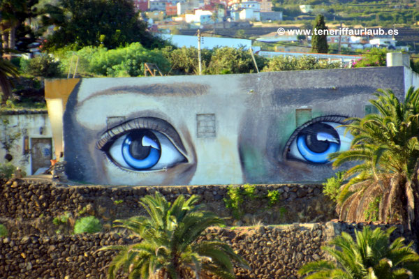 Auf den Ruinen alter Häuser, die auf brachliegenden Grundstücken stehen, finden sich beeindruckende Wandbilder, teils kunstvoll, teils nachdenklich stimmend. Die Fassaden sind baufällig, daher ist beim Erkunden Vorsicht geboten. Der Abstecher lohnt sich jedoch. Bei klarer Sicht eröffnet sich ein traumhafter Ausblick über das grüne Orotavatal (Valle de La Orotava) bis hin zum majestätischen Pico del Teide, ein Panorama, das Kunst und Natur auf besondere Weise verbindet.