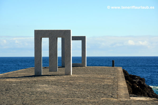 Am westlichen Ende der malerischen Hafenstadt Garachico, an Teneriffas Nordküste, erhebt sich auf einem Molenarm (Damm) direkt am Atlantik die monumentale Marmorskulptur Tensei Tenmoku. Sie steht dort, wo Land und Meer einander begegnen, an einem Ort, der seit Jahrhunderten von Wind, Wellen und Geschichte geformt wurde. Der Hafenbereich von Garachico ist ein Ort von besonderer Atmosphäre, ruhig, aber kraftvoll, umweht von der salzigen Brise des Meeres und eingerahmt von den dunklen, vulkanischen Gesteinsformationen der Insel. Wer sich der Skulptur nähert, passiert zunächst die Altstadt mit ihren engen Gassen, den typischen kanarischen Holzbalkonen und den weiß getünchten Fassaden. Von dort führt ein Spaziergang entlang der Küstenpromenade bis zum Ende des Molenarms, wo das Werk des japanischen Künstlers Kan Yasuda in der Weite des Ozeans steht. Die Lage ist kein Zufall, Tensei Tenmoku ist bewusst als Schnittstelle zwischen Natur und Kunst, zwischen Himmel und Erde gedacht.
