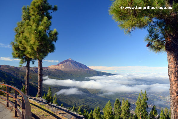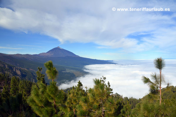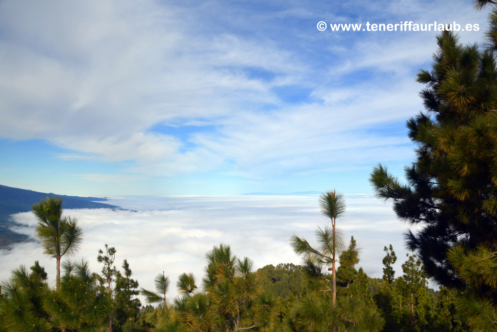Besonders eindrucksvoll ist das häufige Naturphänomen des „Mar de Nubes“, des Wolkenmeers, das sich über dem Orotavatal bildet. Es entsteht durch die Passatwinde, die feuchte Luft gegen die Hänge drücken. Das Tal liegt dann oft komplett unter einer dichten Wolkendecke, während man vom Mirador de Chipeque aus über die weißen Schwaden hinweg in die Ferne blickt, ein magisches Schauspiel, besonders in den frühen Morgenstunden oder kurz vor Sonnenuntergang. Bei klarer Sicht offenbart sich ein weites Panorama. Im Vordergrund liegt das grüne Orotavatal, weiter westlich das zerklüftete Teno-Gebirge, und am Horizont kann man mit etwas Glück sogar die Nachbarinsel La Palma erkennen.