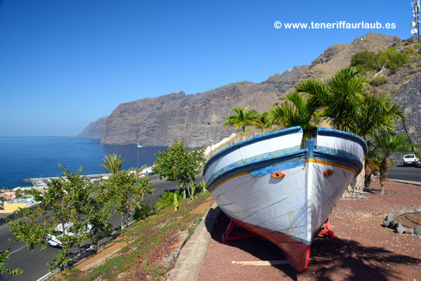 Einer der besten Zeitpunkte für einen Besuch am Mirador Archipenque ist zweifellos der Sonnenuntergang. Dann verwandelt sich das Landschaftsbild in ein Farbenspiel aus Rot-, Orange- und Goldtönen. Die Felsen leuchten auf, das Meer reflektiert die letzten Lichtstrahlen des Tages, und die Silhouetten der Nachbarinseln bilden eine malerische Kulisse. Ein unvergessliches Erlebnis, nicht nur für Romantiker. Doch der Blick reicht nicht nur über das Meer. Direkt unterhalb des Miradors liegt der Ort Los Gigantes mit seinen weiß getünchten Häusern, Hotels und Ferienanlagen, die sich harmonisch an die Hänge schmiegen. Besonders auffällig ist der kleine Yachthafen, der als Ausgangspunkt für Bootsfahrten zur Wal- und Delfinbeobachtung dient. Von oben betrachtet, wirkt der Hafen fast wie ein Miniaturmodell, ein schöner Kontrast zur schroffen Natur ringsum.