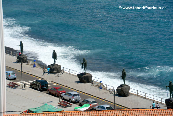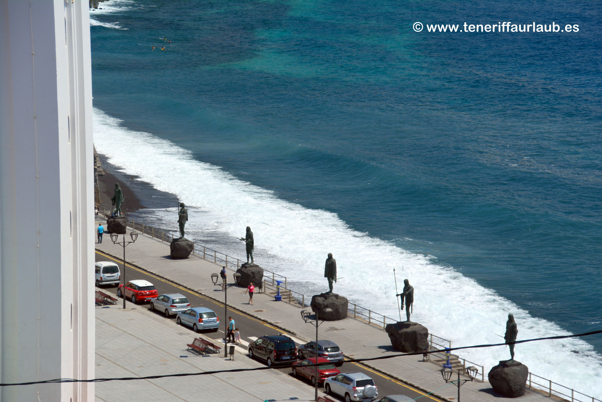 Der Mirador wird räumlich und kulturell geprägt durch die Nähe zur Basilika, dem wichtigsten marianischen Wallfahrtsort der Kanaren. Die heutige Basilika ist ein neoklassizistischer Bau, der im 20. Jahrhundert an der Stelle älterer heiliger Plätze errichtet wurde und die lange Verehrung der Virgen de la Candelaria fortsetzt. Die Gegend ist historisch bedeutsam, Legenden berichten von einer auf dem Strand gefundenen Darstellung der Jungfrau, die sowohl vor als auch nach der europäisch-kolonialen Periode verehrt wurde. Die religiöse Praxis hat bis heute starken Einfluss auf Feierlichkeiten, Festzüge und das Stadtbild. Wer den Mirador besucht, schaut also nicht nur aufs Meer, sondern direkt auf einen Ort, an dem Volksglaube, koloniale Geschichte und moderne Pilgerschaft miteinander verwoben sind. Außerdem hat man auch Sicht auf Statuen der Guanchenkönige, die Los Menceyes.
