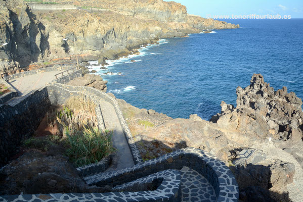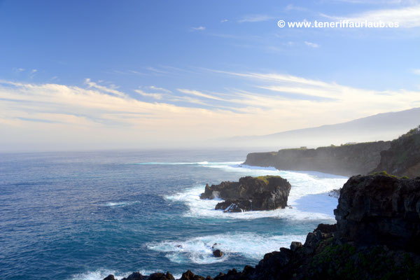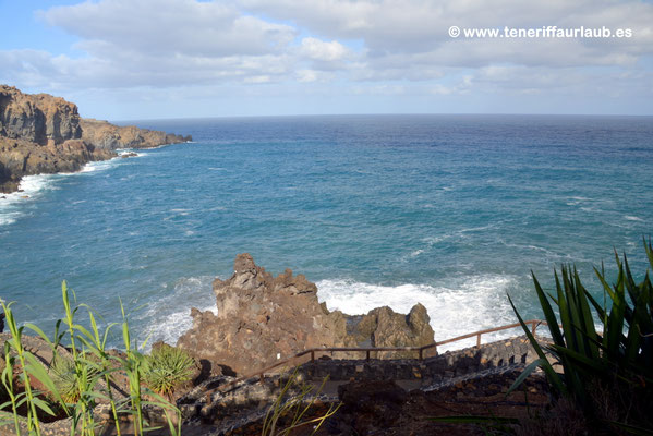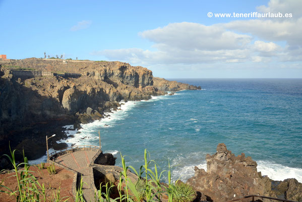 Der Mirador Charco la Laja ist einer der schönsten Aussichtspunkte an der Nordküste von Teneriffa. Er befindet sich im malerischen Ort San Juan de la Rambla, direkt oberhalb des Atlantiks. Von hier aus eröffnet sich ein spektakulärer Blick auf die zerklüftete Küste, die Weite des Meeres und unmittelbar unterhalb, auf das Naturbadebecken Charco de La Laja. Dieses Becken wurde auf natürliche Weise durch vulkanische Aktivität geformt und wird von dunklem Lavagestein eingefasst. Bei ruhiger See wirkt es wie ein geschütztes Schwimmbecken inmitten der wilden Atlantikküste. Die Atmosphäre hier ist einzigartig. Man hört das Rauschen der Wellen, riecht die salzige Meeresluft und kann zugleich die Kraft der Brandung und die Ruhe im Becken erleben. Das Wasser ist klar und erfrischend, und durch die Felsbarrieren werden die größten Wellen abgehalten, perfekt für ein erholsames Bad, sofern die Wetterbedingungen es zulassen.