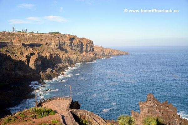 Vom Mirador aus fällt der Blick auch auf die markanten Los Roques de San Juan de la Rambla. Diese beiden imposanten Felsen ragen wie stille Wächter aus dem Meer und sind ein Wahrzeichen der Küste. An klaren Tagen reicht der Blick weit nach Südosten. Man erkennt die Küstenlinie bis Puerto de la Cruz und sogar die weiter östlich gelegenen Orte Mesa del Mar und El Pris. Besonders in den frühen Morgenstunden oder am späten Nachmittag, wenn das Licht weich ist, entfaltet sich hier eine geradezu malerische Szenerie.