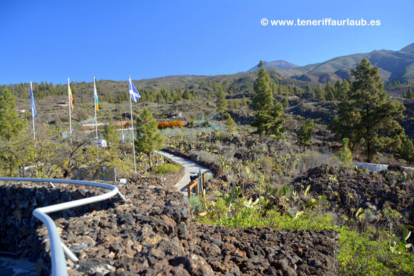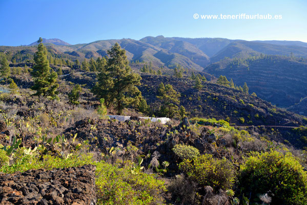 Unterhalb des Aussichtspunktes lädt ein gemütliches Restaurant dazu ein, traditionelle kanarische Spezialitäten zu genießen. Besonders zur Abendzeit lohnt sich ein Besuch, um bei einem guten Essen den traumhaften Sonnenuntergang über dem Atlantik zu erleben, wenn die untergehende Sonne die Küstenlinie in warmes, goldenes Licht taucht und die Felsen von Los Gigantes dramatisch hervorhebt. Der Mirador de Chirche ist auch ein beliebter Ausgangspunkt für Spaziergänger und ambitionierte Wanderer. Von hier führen verschiedene Wanderwege durch eine faszinierende Vulkanlandschaft, vorbei an kleinen Bauernhöfen, eindrucksvollen Kakteen und Pinienwäldern. Für geübte Wanderer bietet sich eine anspruchsvolle Tour bis in die Cañadas del Teide an, den Nationalpark rund um den höchsten Berg Spaniens. Die Strecke ist landschaftlich einmalig und ermöglicht den direkten Aufstieg vom Küstengebiet in die alpine Zone des Teide-Massivs.