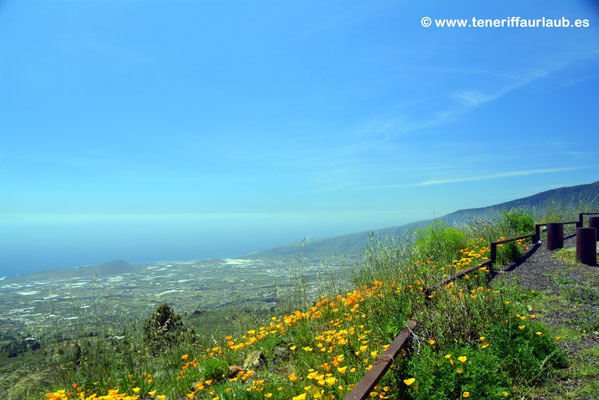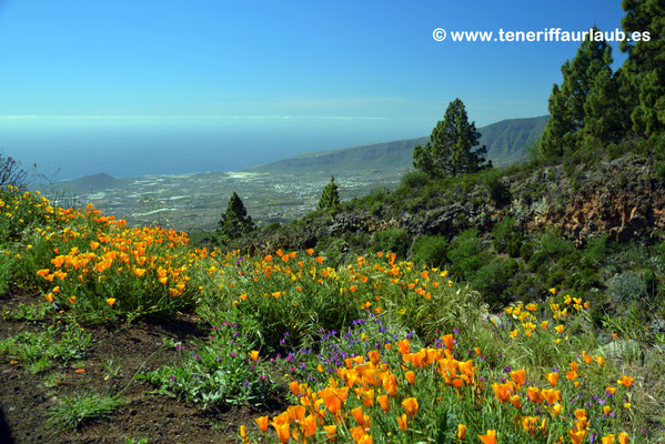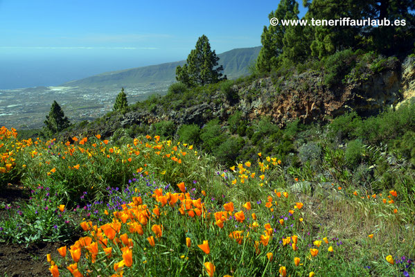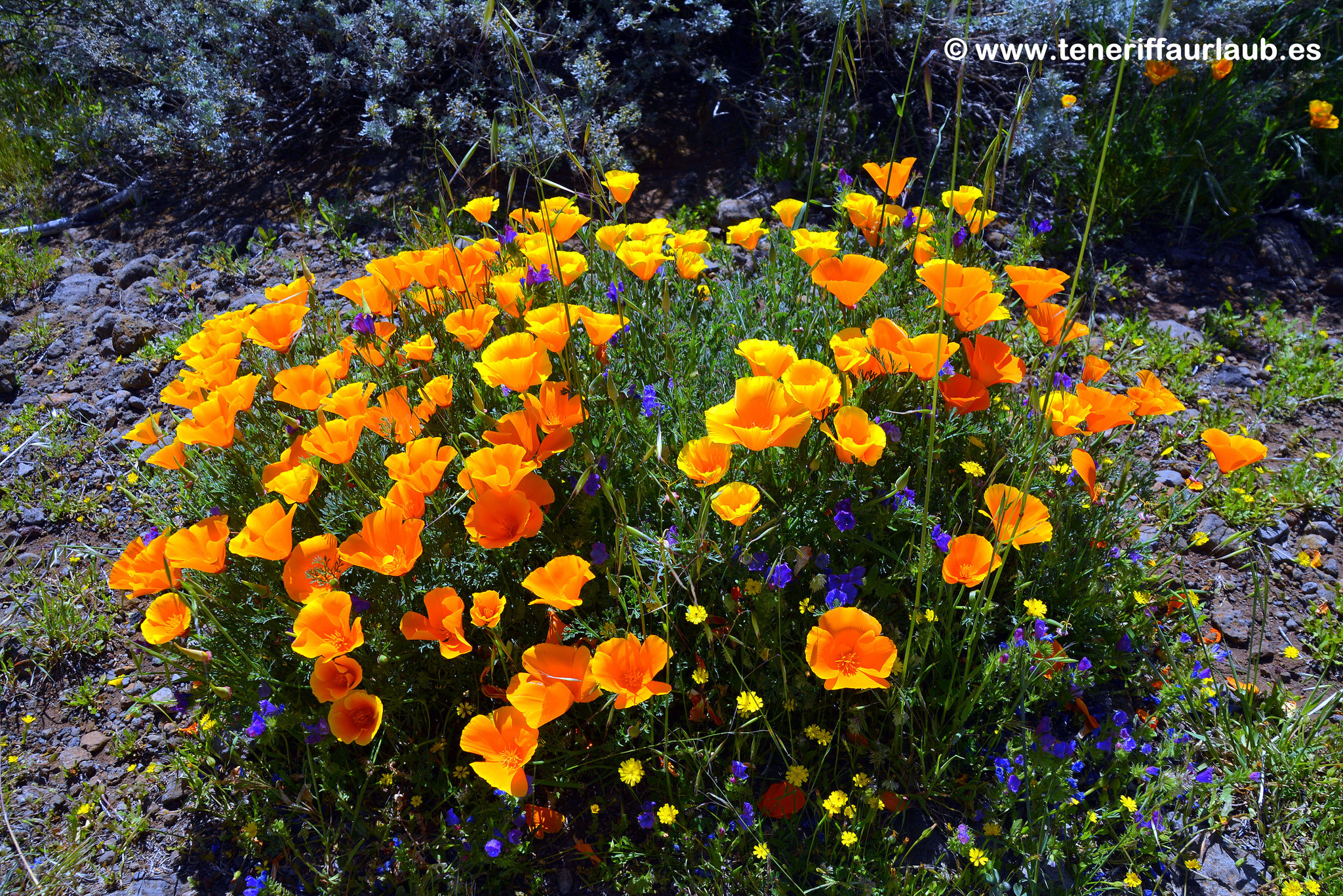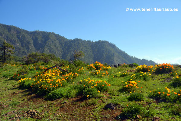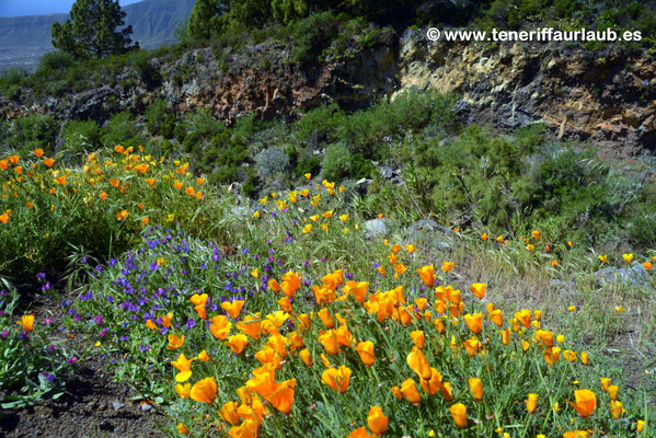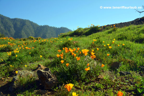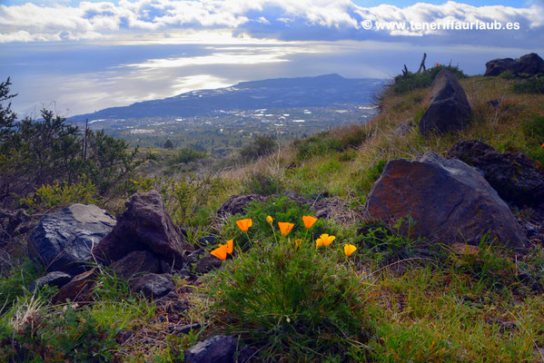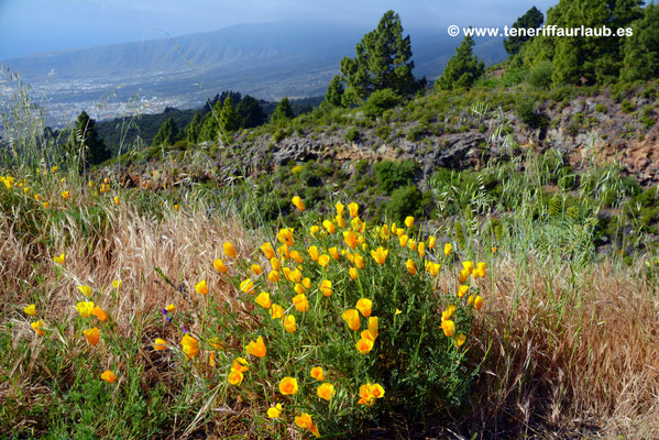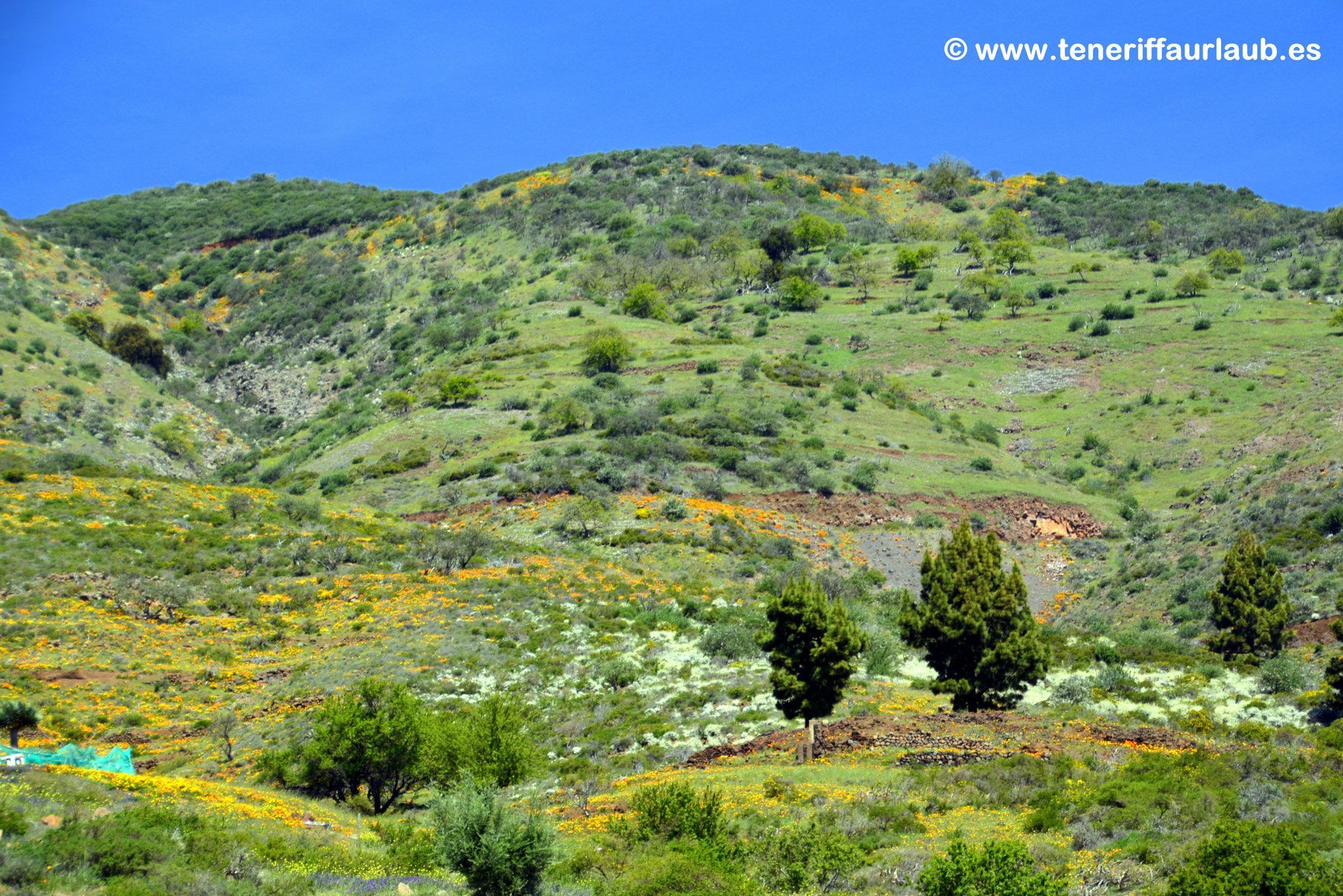 Ein ganz besonderes Schauspiel bietet sich im Frühjahr, vor allem in den Monaten April und Mai. Dann verwandeln sich die Hänge in ein wahres Blütenmeer. Der gesamte Abhang hinunter nach Arafo ist übersät mit Goldmohn, auch Kalifornischer Mohn genannt. Die leuchtenden Blüten tauchen die Landschaft in ein warmes, intensives Gelb, das im Sonnenlicht beinahe zu glühen scheint. Soweit das Auge reicht, erstrecken sich diese Farbtupfer und ziehen Jahr für Jahr zahlreiche Besucher an.