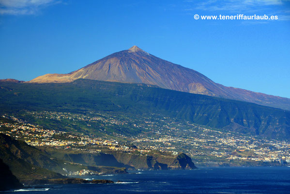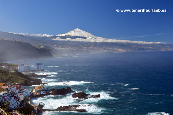 Vom Mirador El Pris genießt man eine unvergleichliche Aussicht, die verschiedene Landschaftselemente miteinander vereint. Im Vordergrund siehst man die kleinen Ortschaften Mesa del Mar und El Pris, mit ihren farbenfrohen Häusern und dem authentischen Charme eines kanarischen Fischerdorfs. Weiter hinten ragt das mächtige Vulkanmassiv des Pico del Teide in den Himmel, der höchste Berg Spaniens und das Wahrzeichen von Teneriffa. Daneben breitet sich das fruchtbare Orotavatal aus, das mit seiner üppigen Vegetation einen starken Kontrast zur kargen Vulkanlandschaft bildet. Und bei sehr klarer Sicht kann man sogar die Silhouette des Leuchtturms von Buenavista del Norte entdecken, der an der wilden Westküste der Insel steht. Diese Kombination aus Küste, Bergwelt und Ortschaften macht den Mirador El Pris zu einem besonders abwechslungsreichen und fotogenen Aussichtspunkt.
