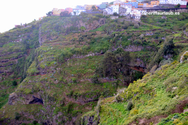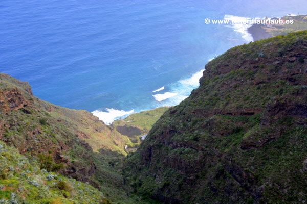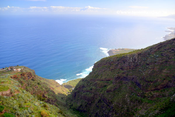 Bei der kleinen Kapelle ist ein Platz mit ein paar Bänken und von dort hat man dann eine tolle Sicht in den Barranco del Domajo. Ebenso hat man von dort eine sehr gute Sicht auf den Playa del Socorro und die Punta del Guindastes, aber auch nach Puerto de la Cruz mit seiner gesamten Küste und nach Mesa del Mar und El Pris.