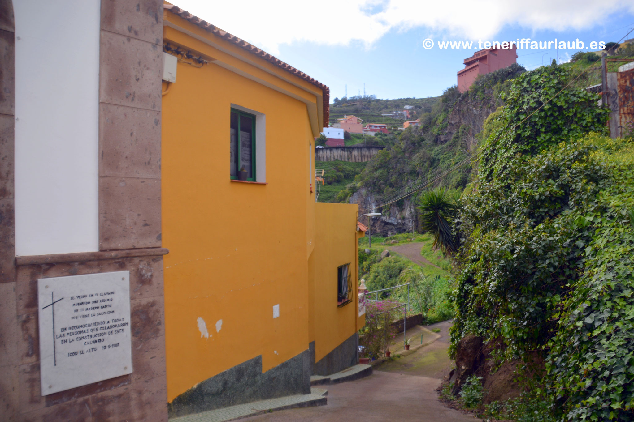 Man biegt rechts kurz vor der Kirche Nuestra Señora del Buen Viaje nach unten ab. Vorsicht es ist ein steile und sehr enge Straße in Icod El Alto, die in einer Sackgasse an einer kleinen Kapelle endet.