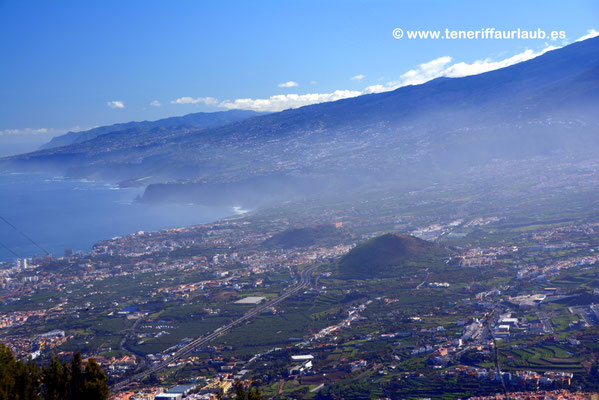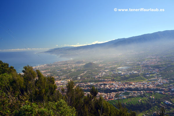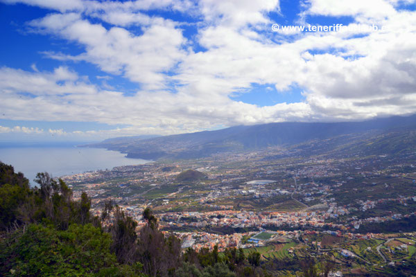 Der Aussichtspunkt Mirador de la Corona liegt auf dem Gipfel des Tigaiga Massivs und oberhalb von Los Realejos auf einer Höhe von 750 m. Von dort hat man einen wunderschönen Blick auf das gesamte Orotavatal und die Küstenlandschaft von Puerto de la Cruz, bis nach hinten zum Ort El Pris und Mesa del Mar. Es ist einer der schönsten Ausblicke, die man auf Teneriffa im Norden bzw. Nordwesten der Insel hat.
