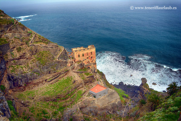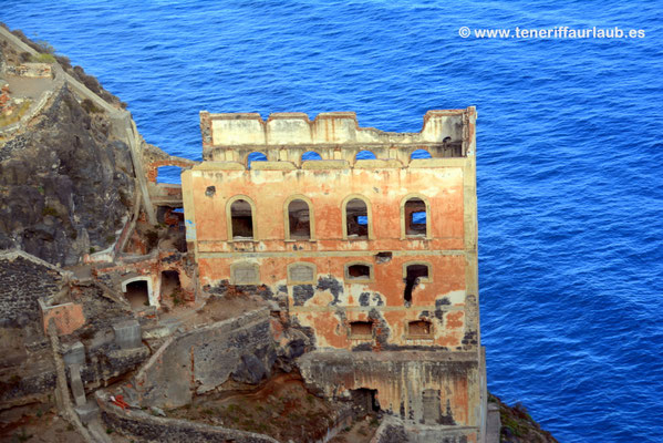Die Geschichte dieses einzigartigen Ortes beginnt im Jahr 1903, als die britische Firma Hamilton hier ein hochmodernes Wasserkraftwerk errichten ließ. Mit Dampfkraft wurde das Wasser aus der Gordejuela-Schlucht nach oben gepumpt, um die Bananenplantagen der Region zu bewässern, ein Meilenstein in der industriellen Entwicklung von Teneriffa. Das Bauwerk, das sich spektakulär an die Felswand klammert, galt als technisches Meisterwerk. Doch der Betrieb war nur von kurzer Dauer. Bereits nach wenigen Jahrzehnten wurde die Anlage stillgelegt, und Wind, Salzluft und Zeit verwandelten die einst stolze Konstruktion in eine malerische Ruine.