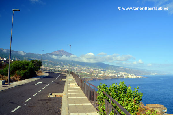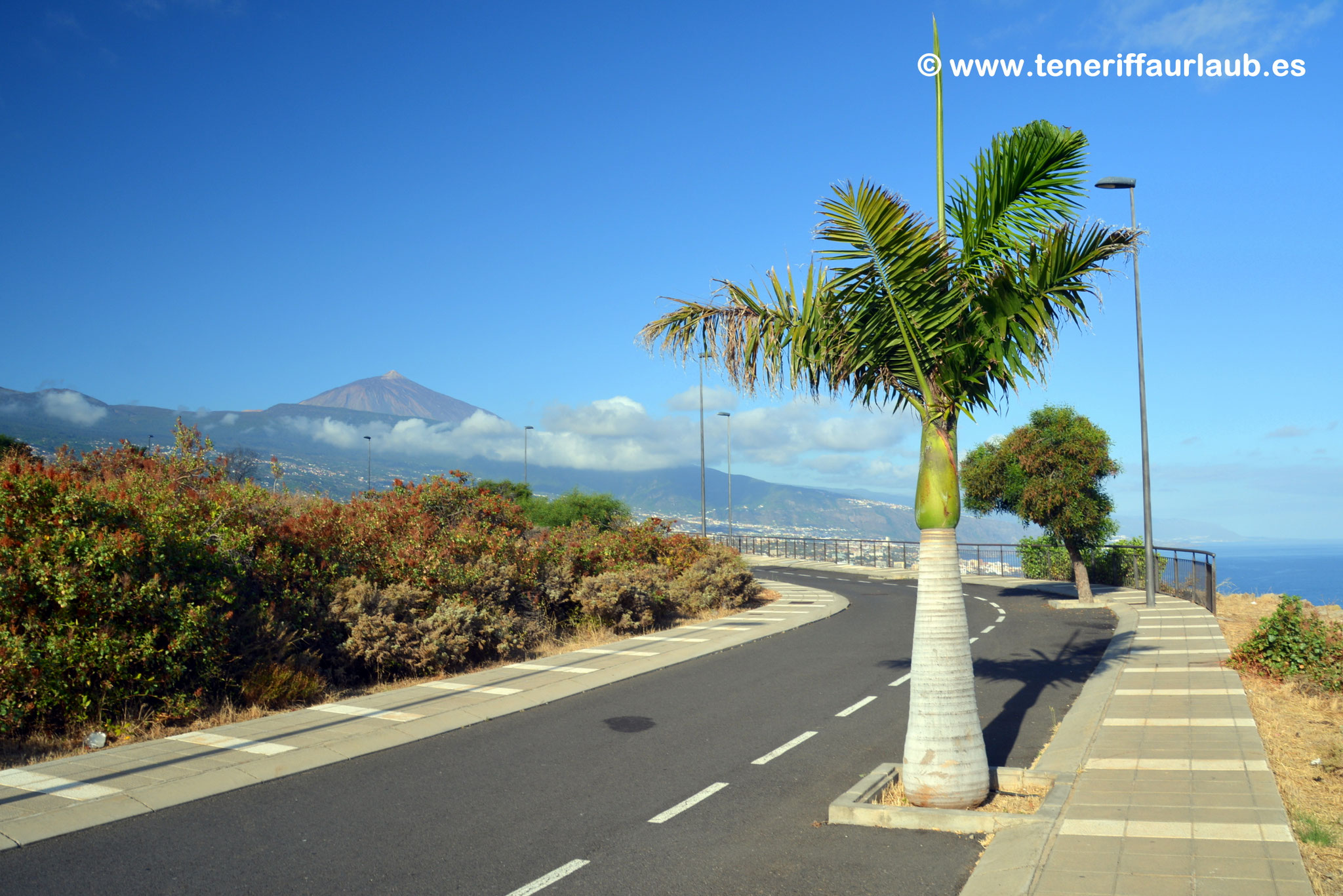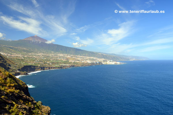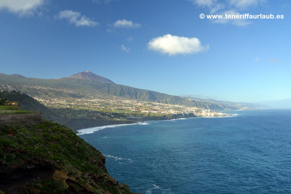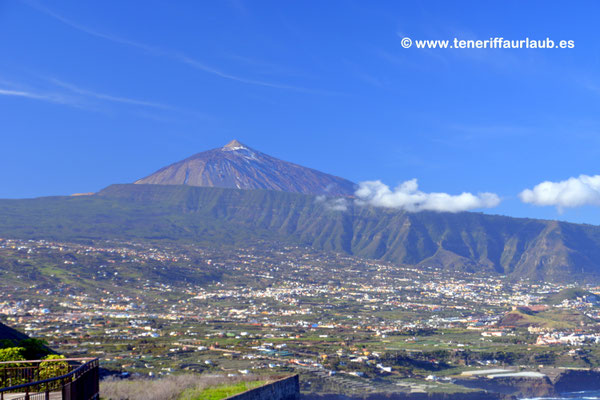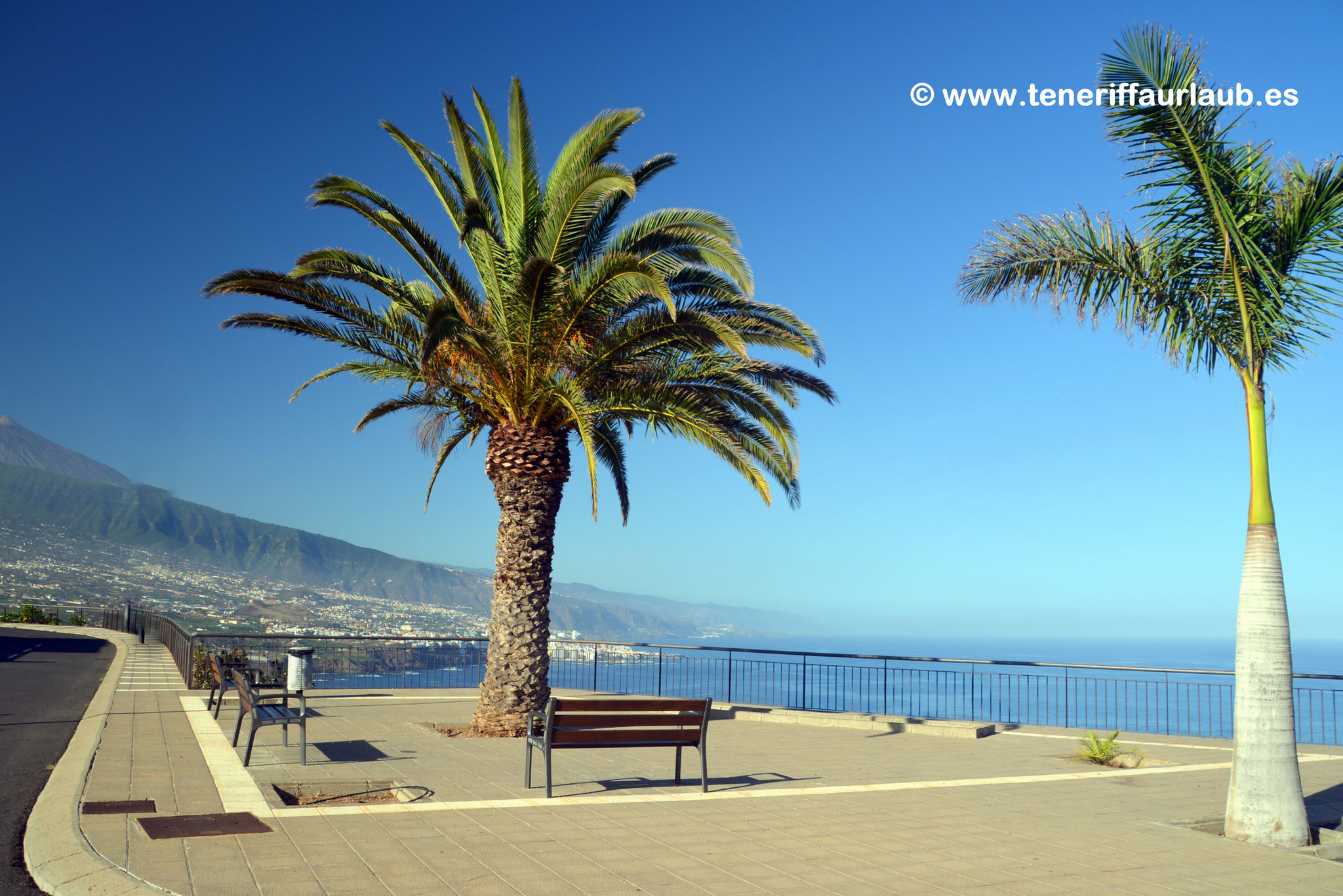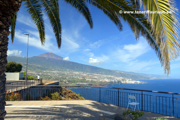 Von der Plattform des Miradors bietet sich ein beeindruckendes Panorama über die gesamte Nordküste. Direkt zu Füßen liegt das fruchtbare Orotavatal, geprägt von Bananenplantagen und grünen Terrassenfeldern. Der bekannte Urlaubsort Puerto de la Cruz mit seiner historischen Altstadt und den Stränden ist gut zu erkennen. Bei klarer Sicht reicht der Blick weit hinaus: Ganz am Horizont erscheint der Leuchtturm von Buenavista del Norte, der die äußerste Nordwestspitze von Teneriffa markiert. Noch eindrucksvoller jedoch ist der majestätische Pico del Teide, der sich im Hintergrund erhebt. Mit 3.715 Metern ist er der höchste Berg Spaniens und vom Mirador de La Quinta wirkt er manchmal so nah, als könnte man ihn fast berühren.