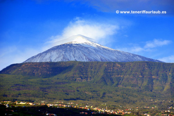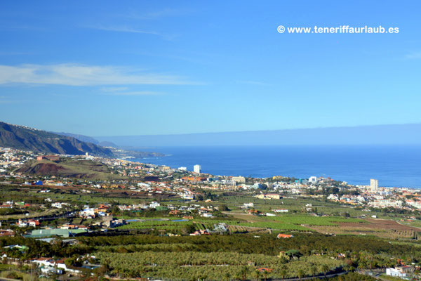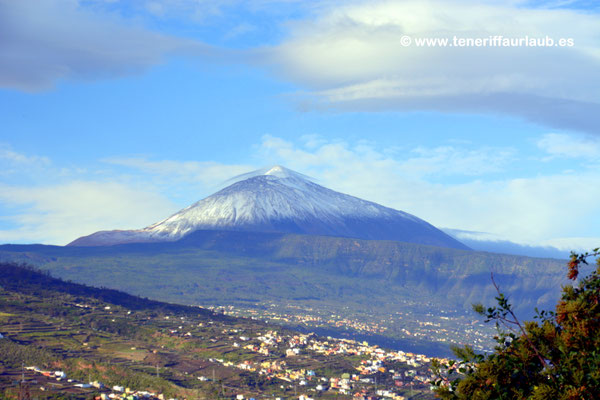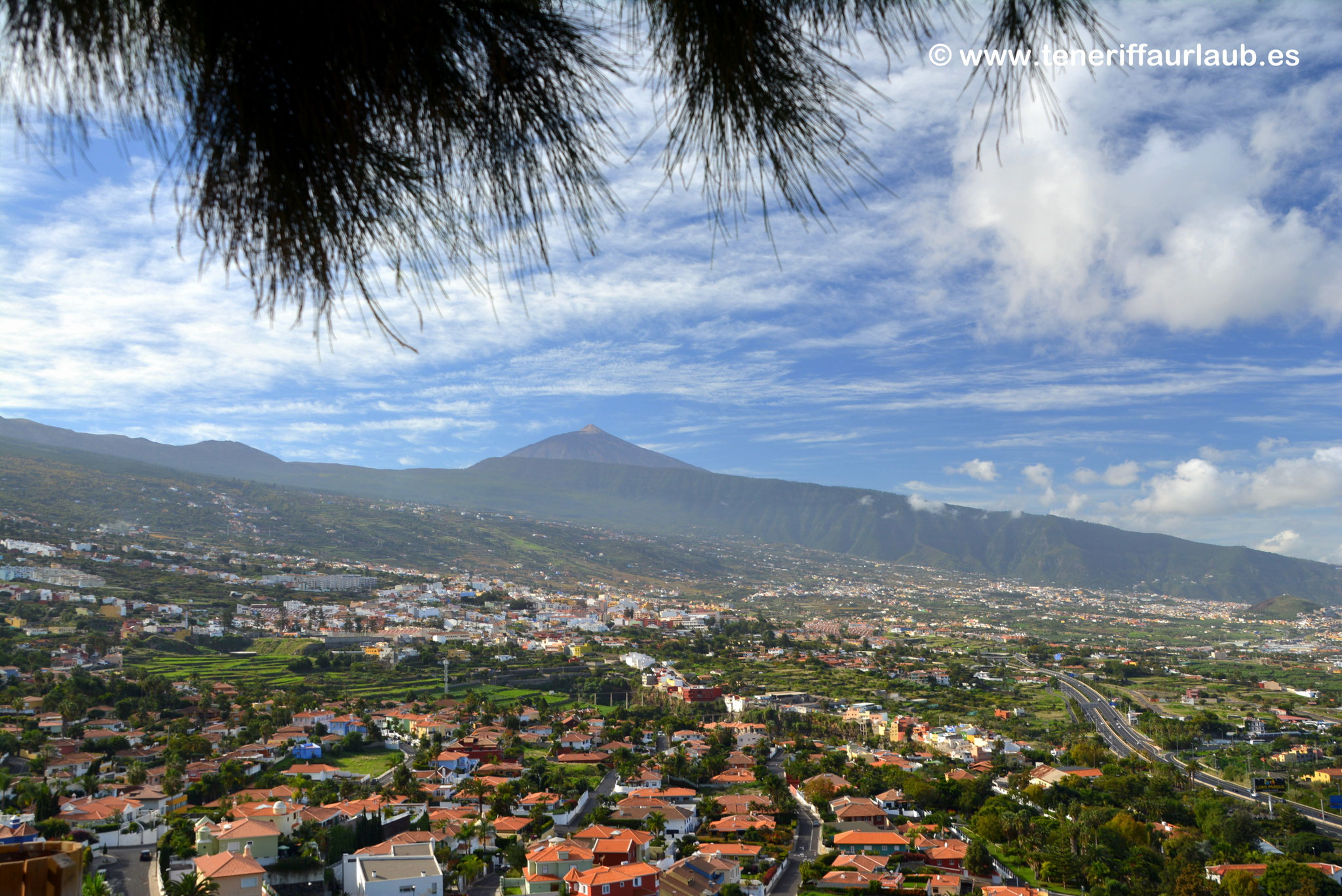 Ein besonderer Höhepunkt des Aussichtspunktes La Resbala ist der direkte Blick auf den Pico del Teide, der mit 3.715 Metern nicht nur der höchste Berg Spaniens, sondern auch eine der markantesten Naturerscheinungen der Kanaren ist. Hier zeigt sich der Vulkan in seiner ganzen majestätischen Größe und scheint das Tal zu überragen. Doch nicht nur der Teide zieht die Blicke auf sich. Wer nach Westen schaut, erkennt die beeindruckenden Gebirgszüge oberhalb von Los Realejos. Die Aussicht reicht noch weiter entlang der gesamten Nordküste von Teneriffa, vom markanten Silo in Los Silos, das als Wahrzeichen der Region gilt, bis hin zum Leuchtturm von Buenavista del Norte, der den nordwestlichsten Punkt der Insel markiert. Diese Weite vermittelt ein eindrucksvolles Bild von der landschaftlichen Vielfalt von Teneriffa.