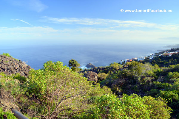Vom Aussichtspunkt eröffnet sich ein beeindruckender Blick über die Nordküste der Insel. Besonders markant ist der Roque de Garachico, der sich wie ein Felswächter vor der Küste aus dem Atlantik erhebt. Bei klarer Sicht reicht das Panorama entlang der Küstenlinie bis nach Puerto de la Cruz und tief hinein in das fruchtbare Orotavatal. Auch die umliegenden Hänge mit ihrer typischen Vegetation verleihen dem Ausblick einen besonderen Reiz.