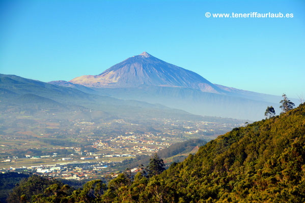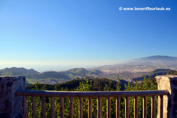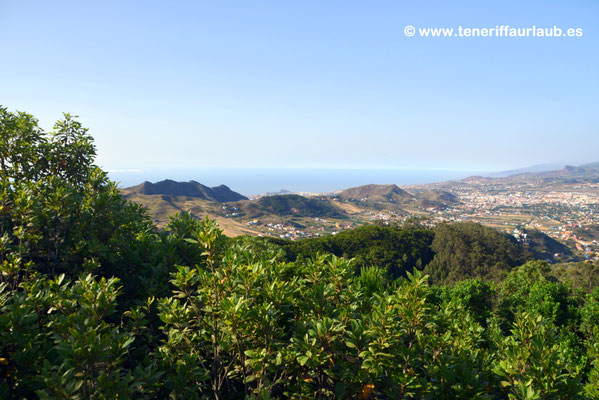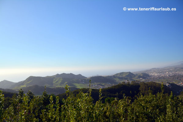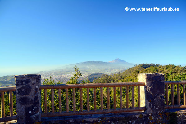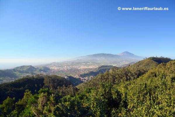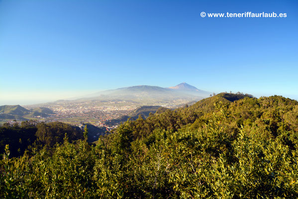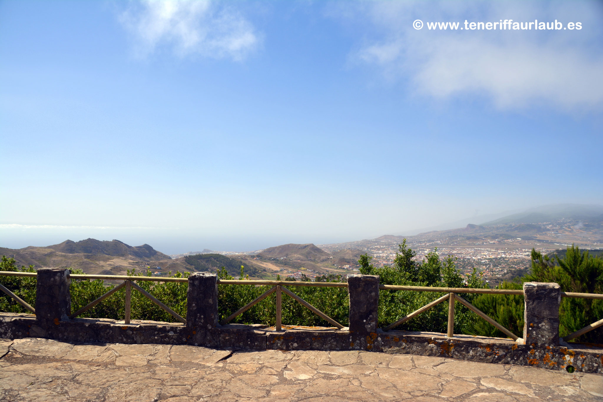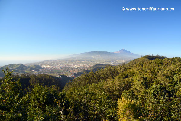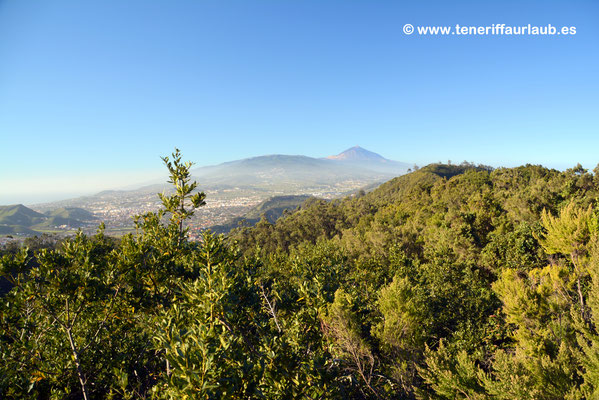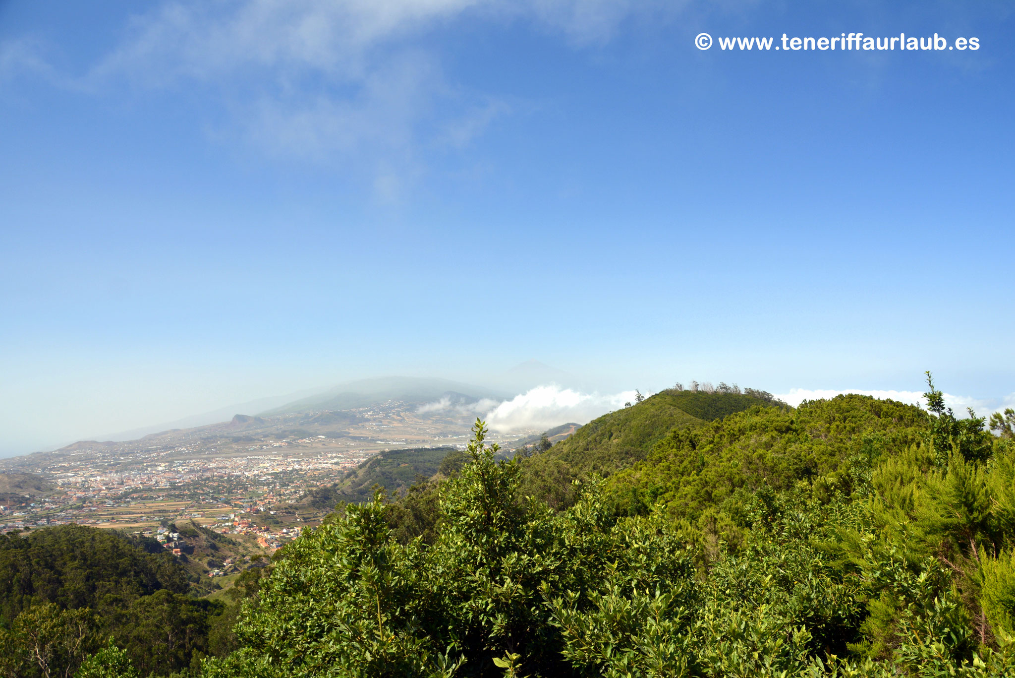 Schon beim ersten Schritt aus dem Fahrzeug breitet sich eine Szenerie aus, die in ihrer Vielfalt und Tiefe beeindruckt. Direkt unterhalb des Aussichtspunkts liegt die Stadt La Laguna, deren Altstadt mit ihren farbigen Fassaden und typischen Ziegeldächern im Sonnenlicht schimmert. Weiter hinten am Horizont erkennt man die Hauptstadt Santa Cruz de Tenerife, deren moderne Hafenanlagen sich wie ein schmaler Streifen zwischen Meer und Bergland einfügen. Beherrschend über allem thront der Pico del Teide, der mit seinen 3 815 Metern Höhe nicht nur der höchste Berg Spaniens ist, sondern auch eine fast mythische Präsenz entfaltet. Besonders an klaren Tagen, wenn der Gipfel im Sonnenlicht glüht oder mit Schnee bedeckt ist, bietet sich ein Anblick, der lange in Erinnerung bleibt. Der Blick schweift weiter über sanfte Hänge, die von den dichten Baumkronen des Mercedeswaldes bedeckt sind, und verliert sich schließlich in der Weite des Himmels.