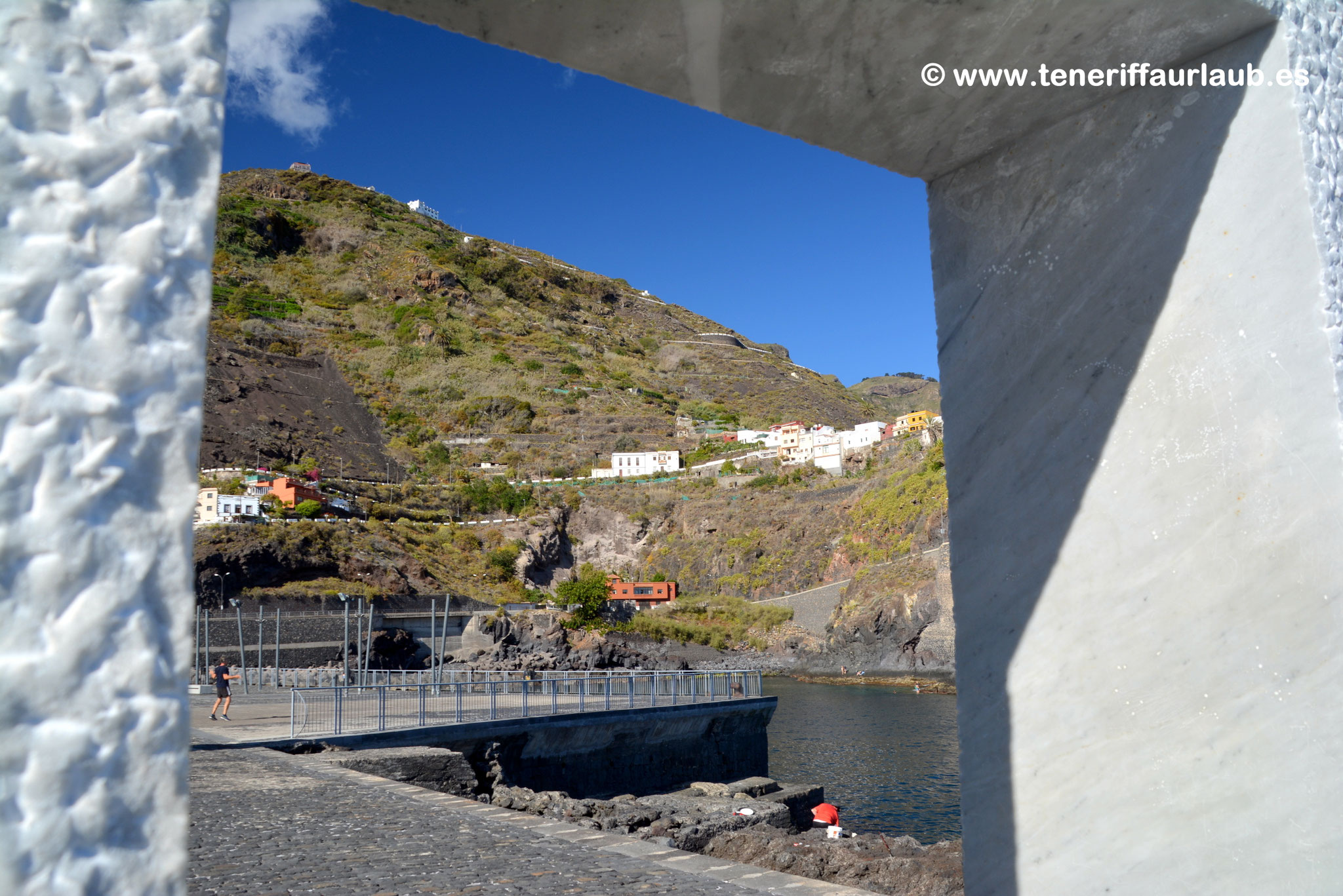 Auf der anderen Seite des Punta del Muelle, sieht man oben den bekannten Aussichtspunkt El Emigrante, der eine tolle Geschichte hat, aber auch den wunderschönen in der Höhe liegende Ort San Pedro de Daute, der ein Stadtteil von Garachico ist und ebenso eine Traumaussicht bietet.