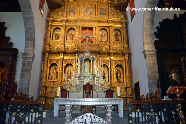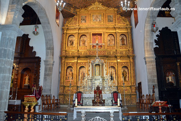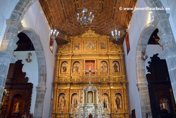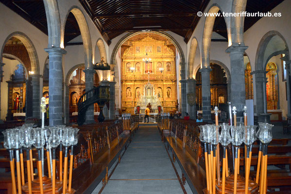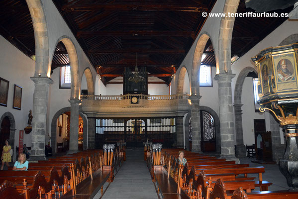 Die Kirche präsentiert sich außen eher schlicht, die Fassaden sind weiß verputzt, dennoch besitzt sie eine sehr sorgfältig gearbeitete Hauptportalfassade im manieristischen Stil und einen markanten Glockenturm, der aus mehreren übereinandergesetzten Körpern besteht und sich deutlich vom kubischen Schiffkörper abhebt. Grundriss und Innenaufbau folgen traditionellen kanarischen Vorbildern. Das Innere ist in mehrere Schiffe gegliedert, getrennt durch Rundbögen auf glatten Pfeilern, und es gibt verschiedene Seitenkapellen, die dem Besucher einen Eindruck von der funktionalen und liturgischen Entwicklung des Hauses geben. Besonders auffällig sind die unterschiedlichen Holzdecken (kunstvolle Artesonados), die typische Einflüsse aus dem Mudéjar- und inseltypischen Handwerk zeigen.