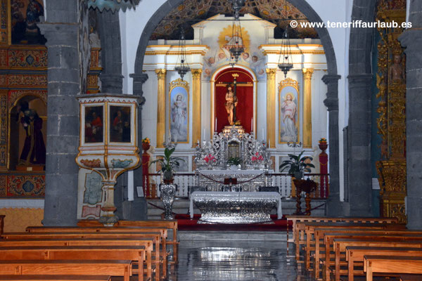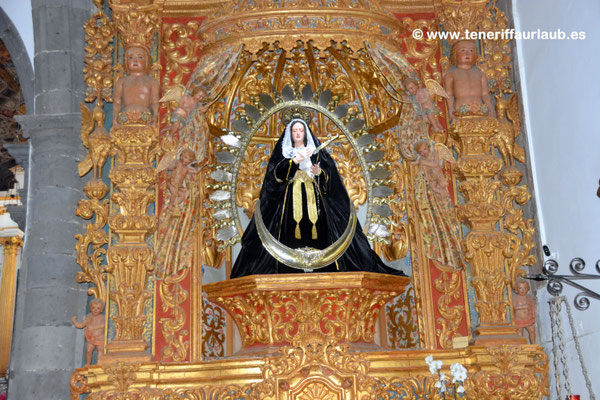 Die Architektur des Santuario zeichnet sich durch eine harmonische Mischung aus kolonialem Stil und lokalen kanarischen Elementen aus. Auffällig ist die Fassade mit ihren klaren Linien, die durch kunstvolle barocke Details ergänzt wird. Das Innere der Kirche ist schlicht und doch elegant gestaltet, mit einem Hauptaltar, der dem Santísimo Cristo de los Dolores gewidmet ist. Die Holzschnitzereien, Gemälde und vergoldeten Verzierungen im Altarbereich ziehen die Blicke der Besucher auf sich und spiegeln die kunsthandwerkliche Tradition von Teneriffa wider. Die Decken- und Wandmalereien sind sorgfältig restauriert und vermitteln einen Eindruck von der religiösen Hingabe der vergangenen Jahrhunderte.