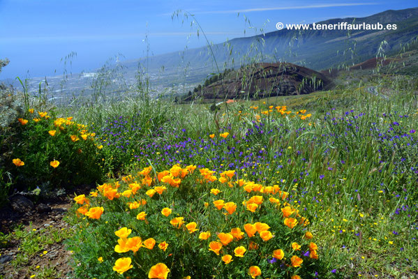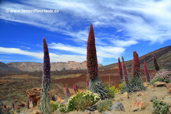 Aufgrund des Passatwindes und der unterschiedlichen Höhenzonen besteht auf Teneriffa eine sehr vielfältige Flora, die auch einige endemische Pflanzen zu bieten hat. An den Küstenabschnitten sieht man Opuntien und die kanarische Palme. Bei ca. 800 m gibt es z.B. Lorbeerwälder, die auch Nebelurwälder genannt werden. In den Höhen um 1000 bis 2000 m befindet sich der kanarische Kiefernwald. Auf höheren Lagen ist vor allem der Wildpret Natternkopf zu erwähnen, der purpurrot blüht, bis zu 2,5 m hoch werden kann und der Stolz Teneriffas ist. Das Teide Veilchen kann noch in einer Höhe von 3400 m wachsen. Angebaut werden auf Teneriffa u.a. kleine Bananen, Tabak und Wein.