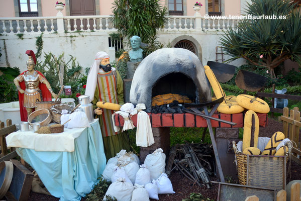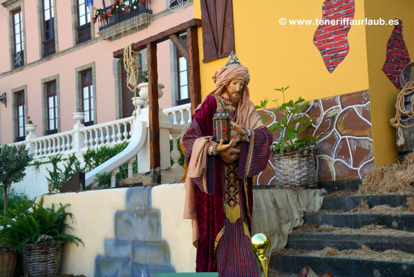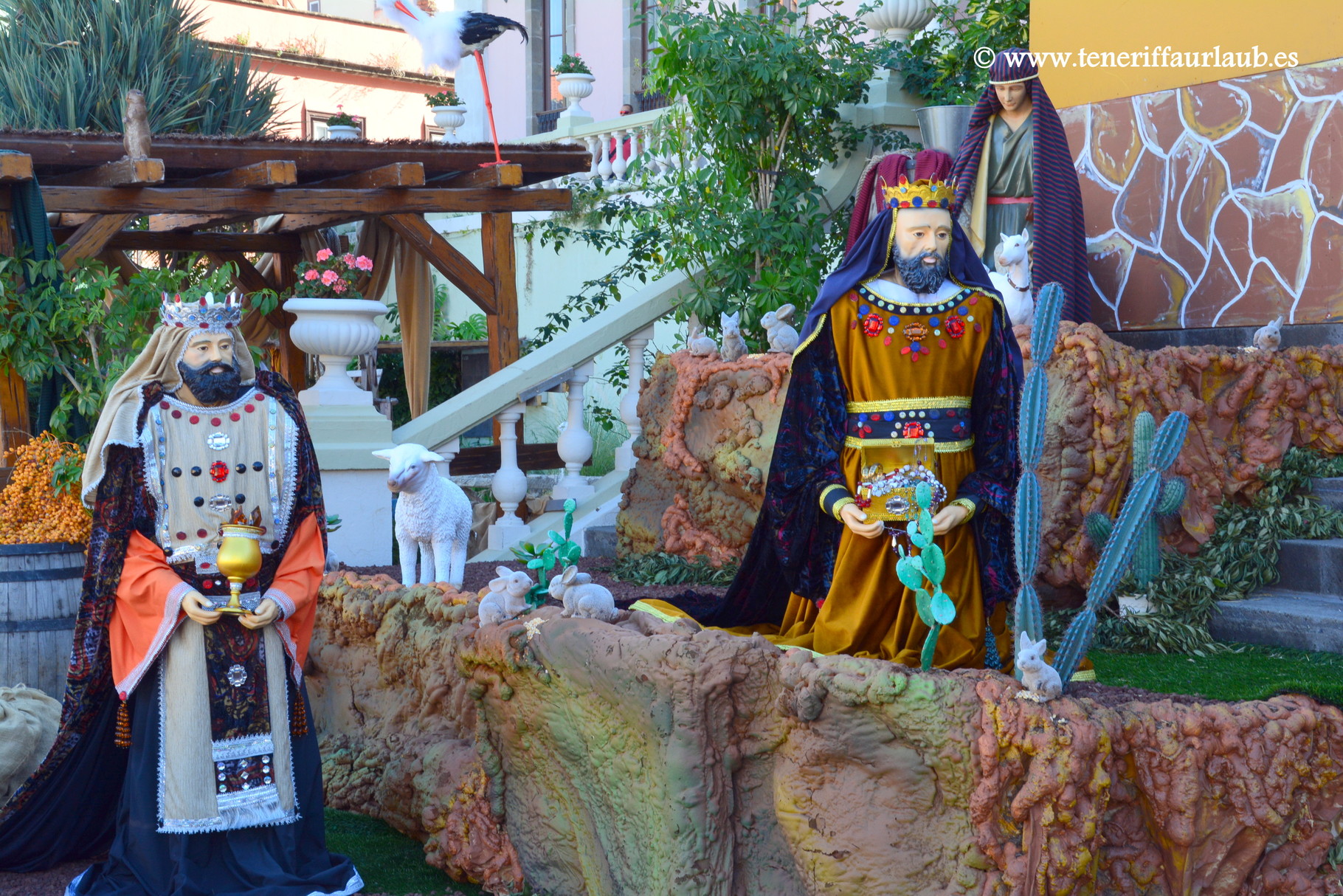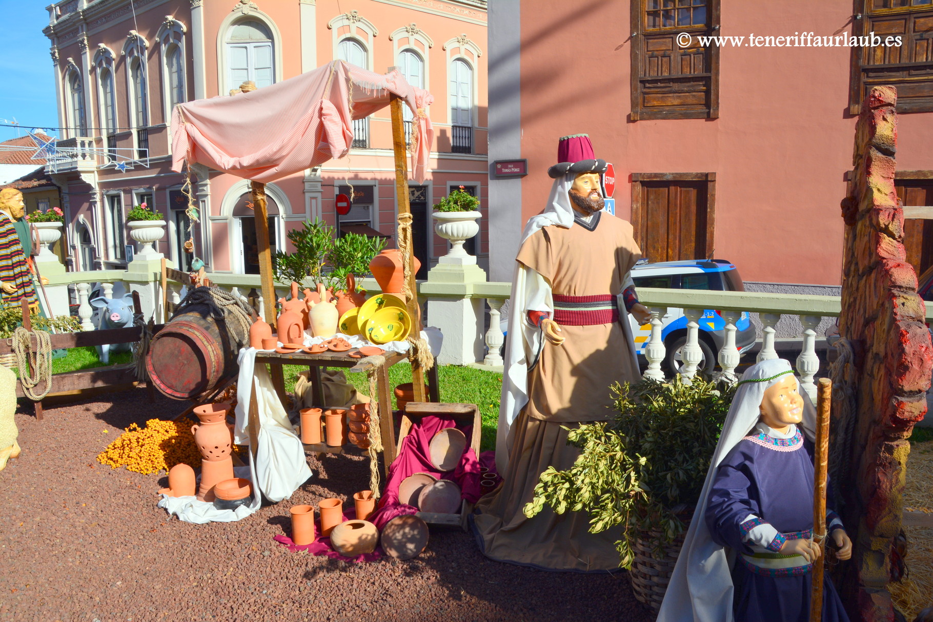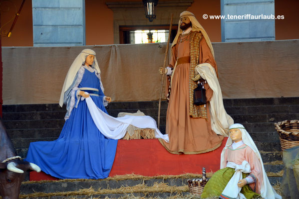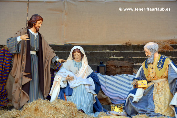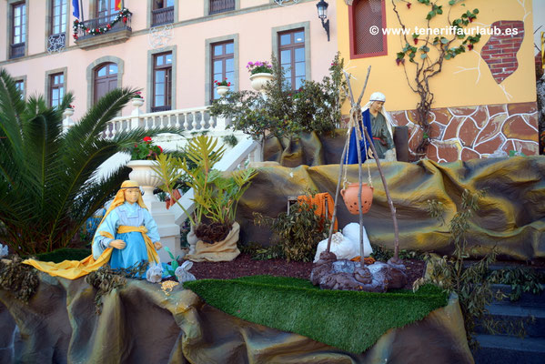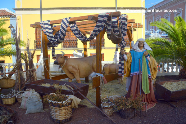 In La Orotava sieht man bereits ab Ende November wieder die große Weihnachtskrippe auf dem Rathausplatz. Die Krippe ist dann aber noch nicht vollständig, denn das "Christkind" wird selbstverständlich erst am 24. Dezember dazugelegt.