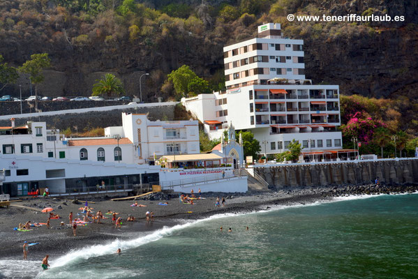 San Marcos ist vor allem bekannt für seinen schwarzen Sandstrand, der durch hohe, steil aufragende Felswände vor Wind und Wellengang geschützt ist. Diese natürliche Lage macht den Strand zu einem beliebten Ort zum Baden und Sonnen, sowohl für Einheimische als auch für Urlaubsgäste. Der Zugang zum Meer ist sanft abfallend, was den Strand auch für Familien mit Kindern attraktiv macht. Für den nötigen Komfort ist ebenfalls gesorgt: Duschen, Umkleidekabinen, sowie Liegen und Sonnenschirme, die gemietet werden können, stehen zur Verfügung. Ein großer Parkplatz in unmittelbarer Nähe erleichtert die Anreise, und Rettungsschwimmer sorgen für die Sicherheit der Badegäste.