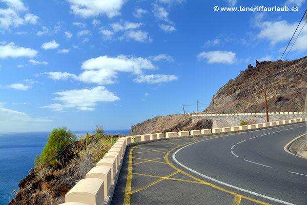 Die Anreise selbst ist bereits ein Erlebnis. Ausgangspunkt ist die Hauptstadt Santa Cruz, von der aus man zunächst in Richtung des berühmten Playa de las Teresitas fährt, einem der wenigen Strände Teneriffas mit feinem, weißen Saharasand und gesäumt von Palmen. Von dort aus windet sich eine schmale, serpentinenreiche Straße an der Küste entlang durch steile Felsformationen und üppige Vegetation bis in das abgeschiedene Dorf. Dieser Straßenabschnitt hat Geschichte. Bis 1922 war Igueste nur schwer erreichbar, der Seeweg galt als der schnellste Weg nach Santa Cruz. Erst mit dem Bau einer einfachen Fahrspur durch die Felsen wurde der Ort erstmals über Land erschlossen. Ab 1940 wurde die Straße befestigt und gepflastert, was schließlich den Einsatz öffentlicher Verkehrsmittel ermöglichte und die Verbindung zur Außenwelt entscheidend verbesserte.