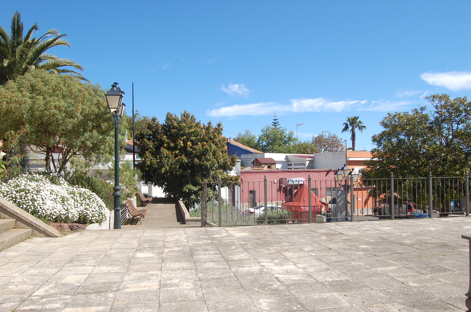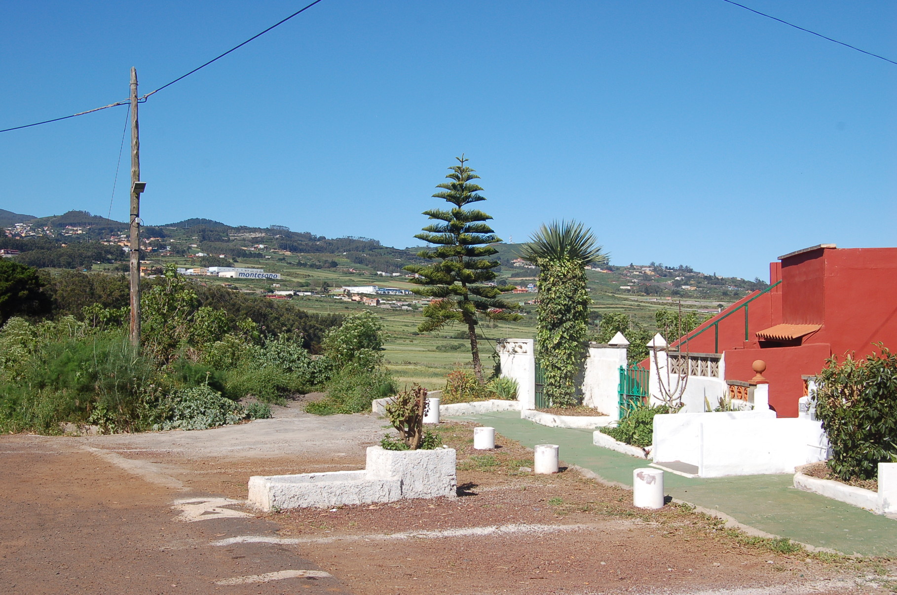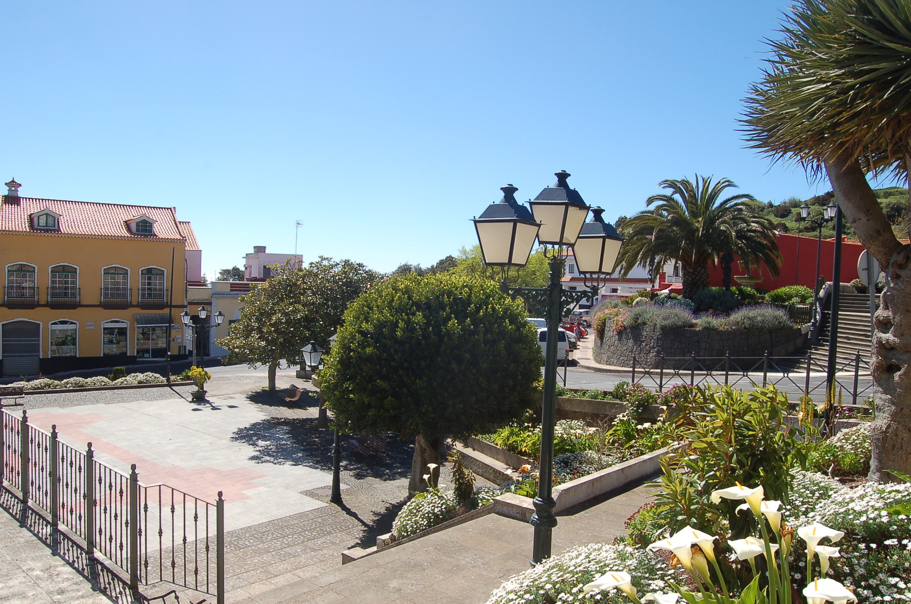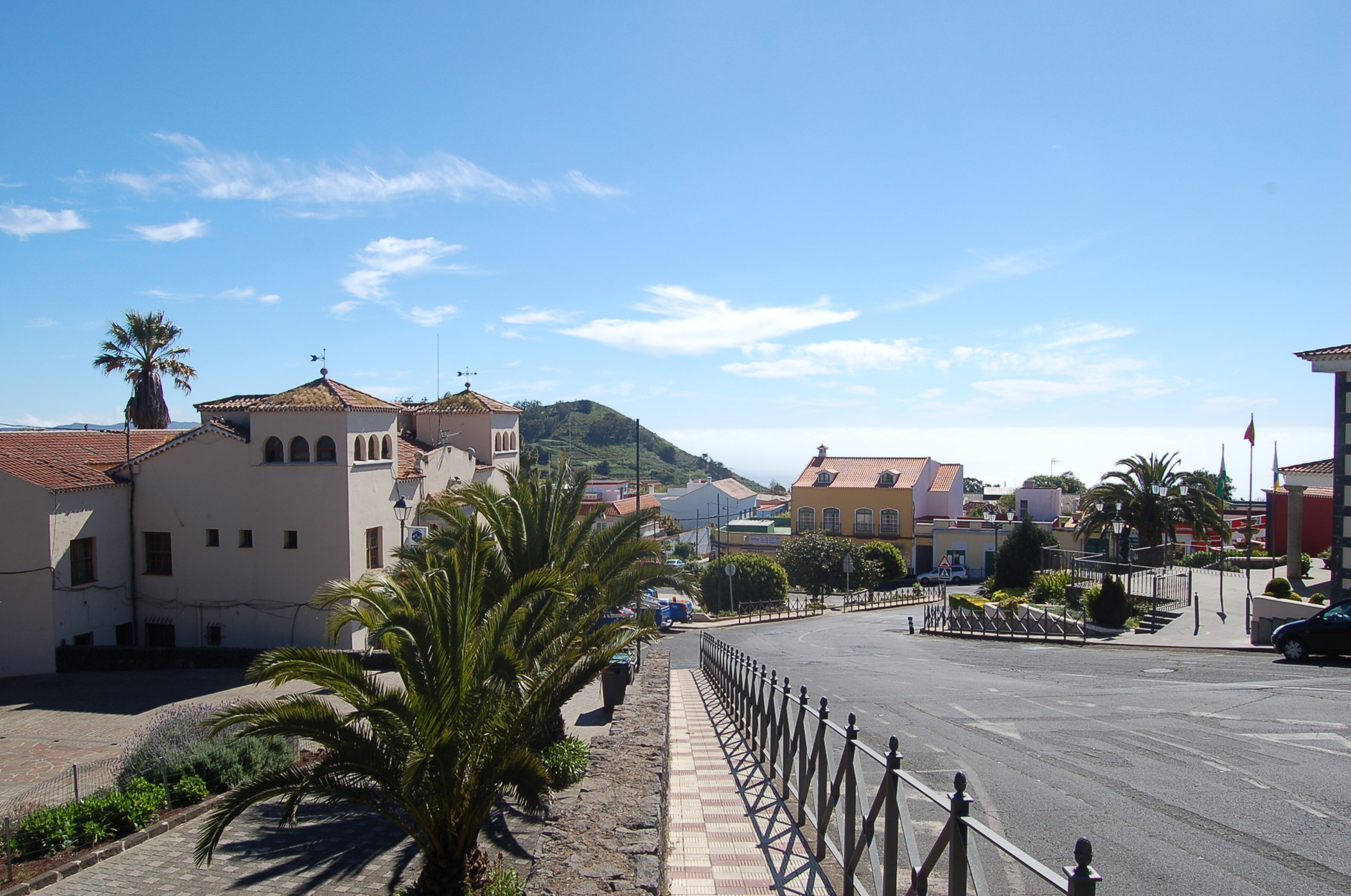 La Esperanza empfängt seine Besucher mit einer Mischung aus traditioneller kanarischer Bauweise und ländlichem Charme. Zwischen verstreut liegenden Häusern und gepflegten Fincas liegt der einladende Dorfplatz, der sich an sonnigen Tagen mit Leben füllt. Mittelpunkt des Ortes ist die kleine Kirche Nuestra Señora de La Esperanza, deren schlichte Schönheit und ruhige Atmosphäre zum Verweilen einladen. Wer den Kirchplatz betritt, wird bei klarem Wetter mit einem weiten Blick belohnt. Das Tal öffnet sich in sanften Linien bis hinunter zum Atlantik, dessen tiefblaues Glitzern den Horizont säumt.