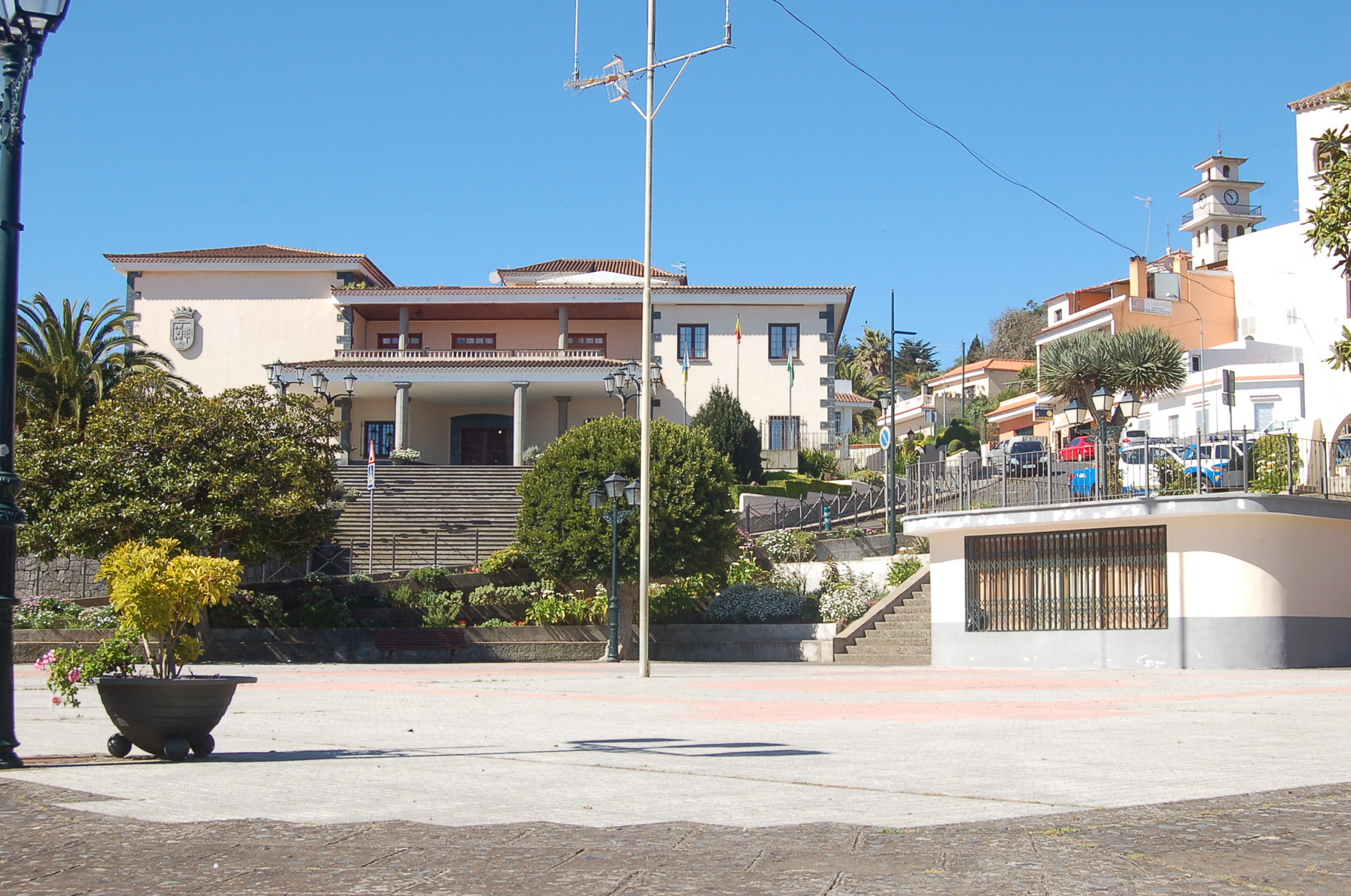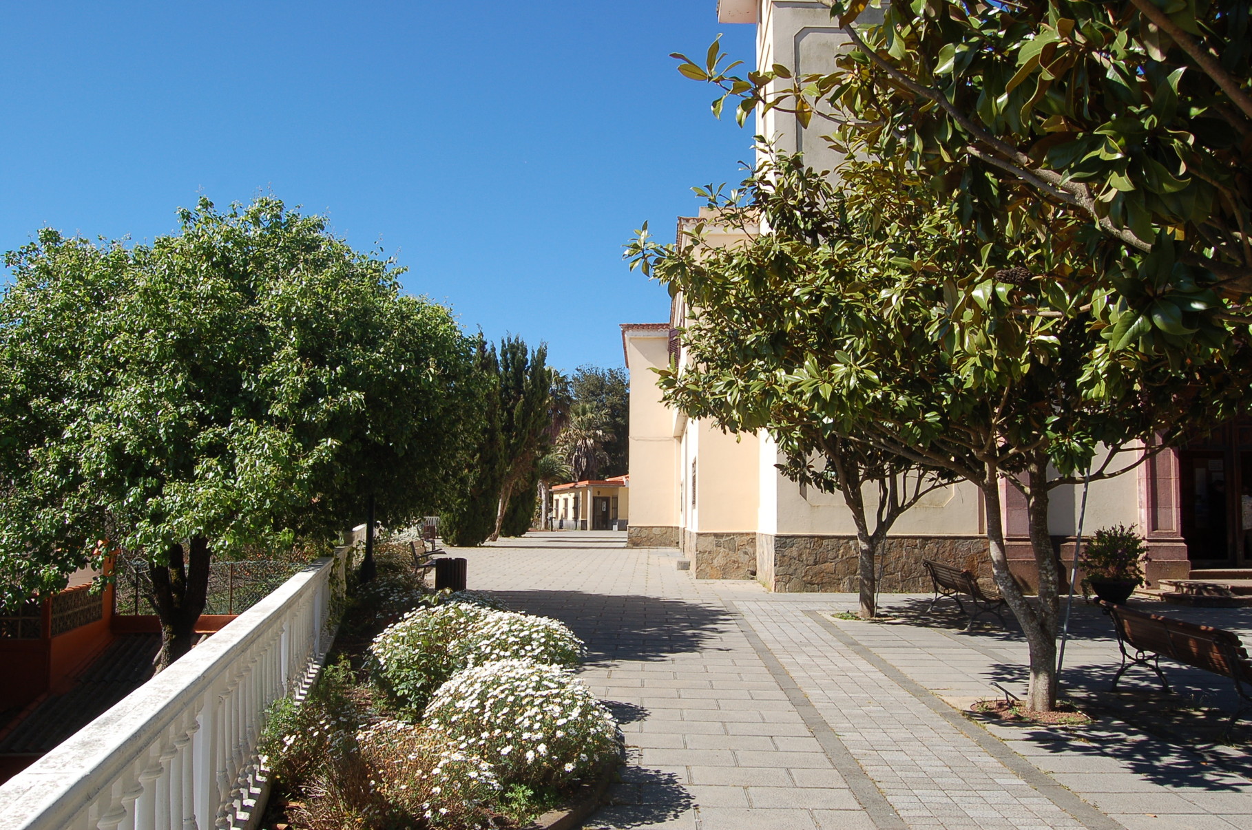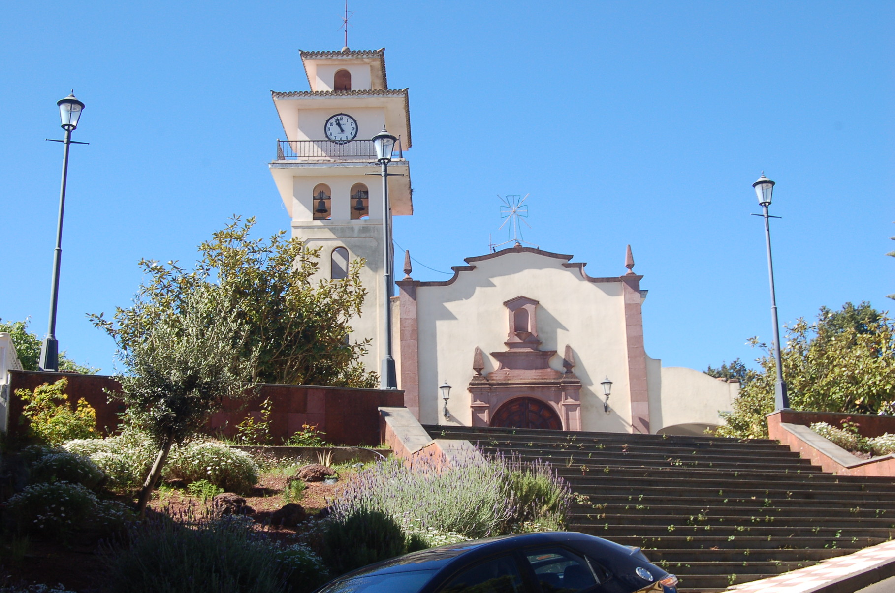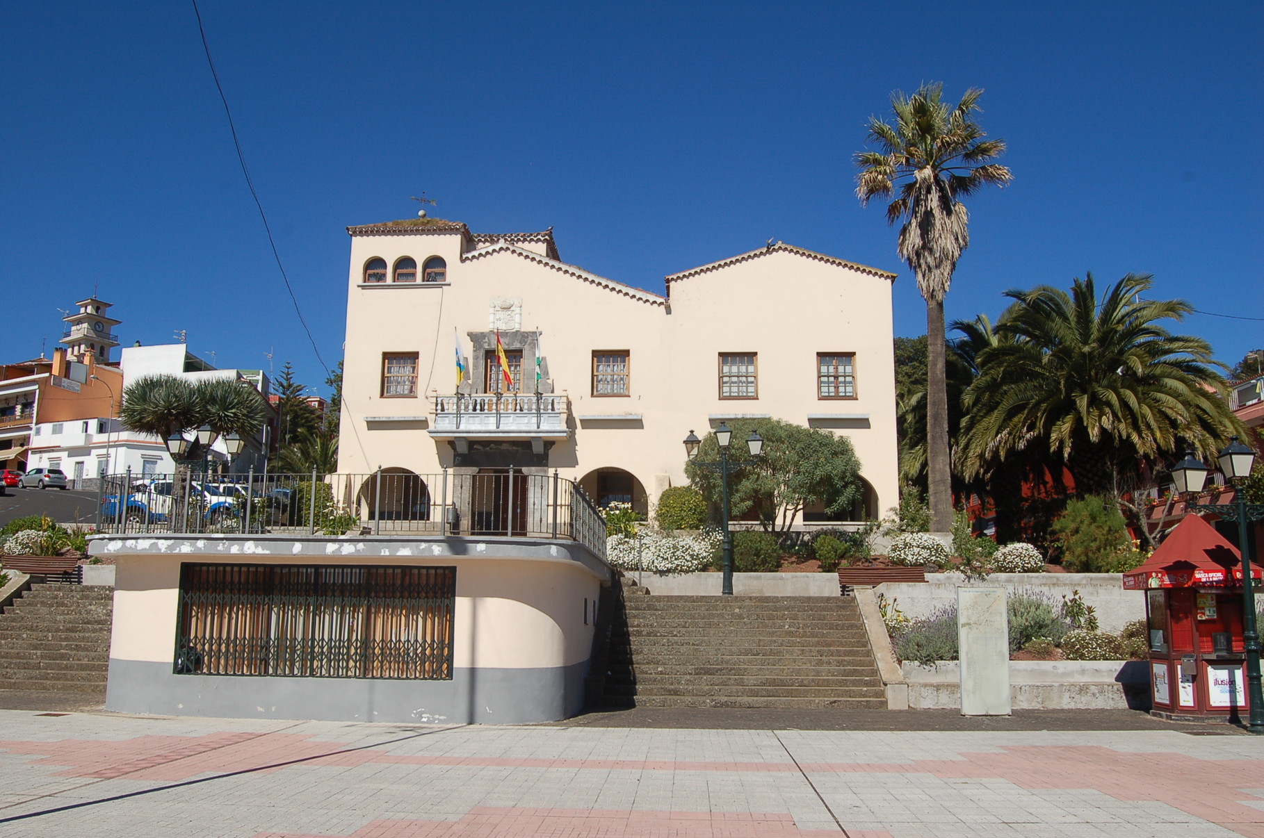 La Esperanza empfängt seine Besucher mit einer Mischung aus traditioneller kanarischer Bauweise und ländlichem Charme. Zwischen verstreut liegenden Häusern und gepflegten Fincas liegt der einladende Dorfplatz, der sich an sonnigen Tagen mit Leben füllt. Mittelpunkt des Ortes ist die kleine Kirche Nuestra Señora de La Esperanza, deren schlichte Schönheit und ruhige Atmosphäre zum Verweilen einladen. Wer den Kirchplatz betritt, wird bei klarem Wetter mit einem weiten Blick belohnt. Das Tal öffnet sich in sanften Linien bis hinunter zum Atlantik, dessen tiefblaues Glitzern den Horizont säumt.