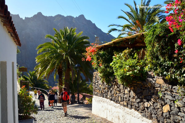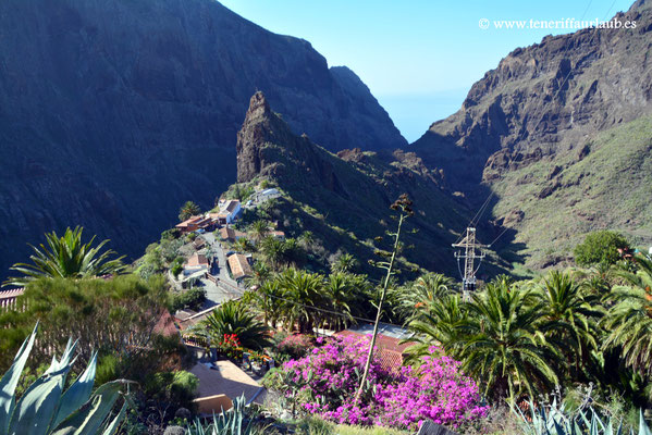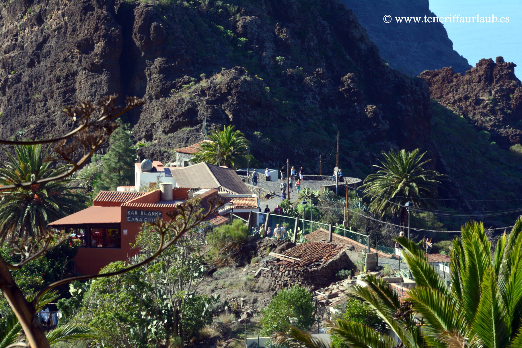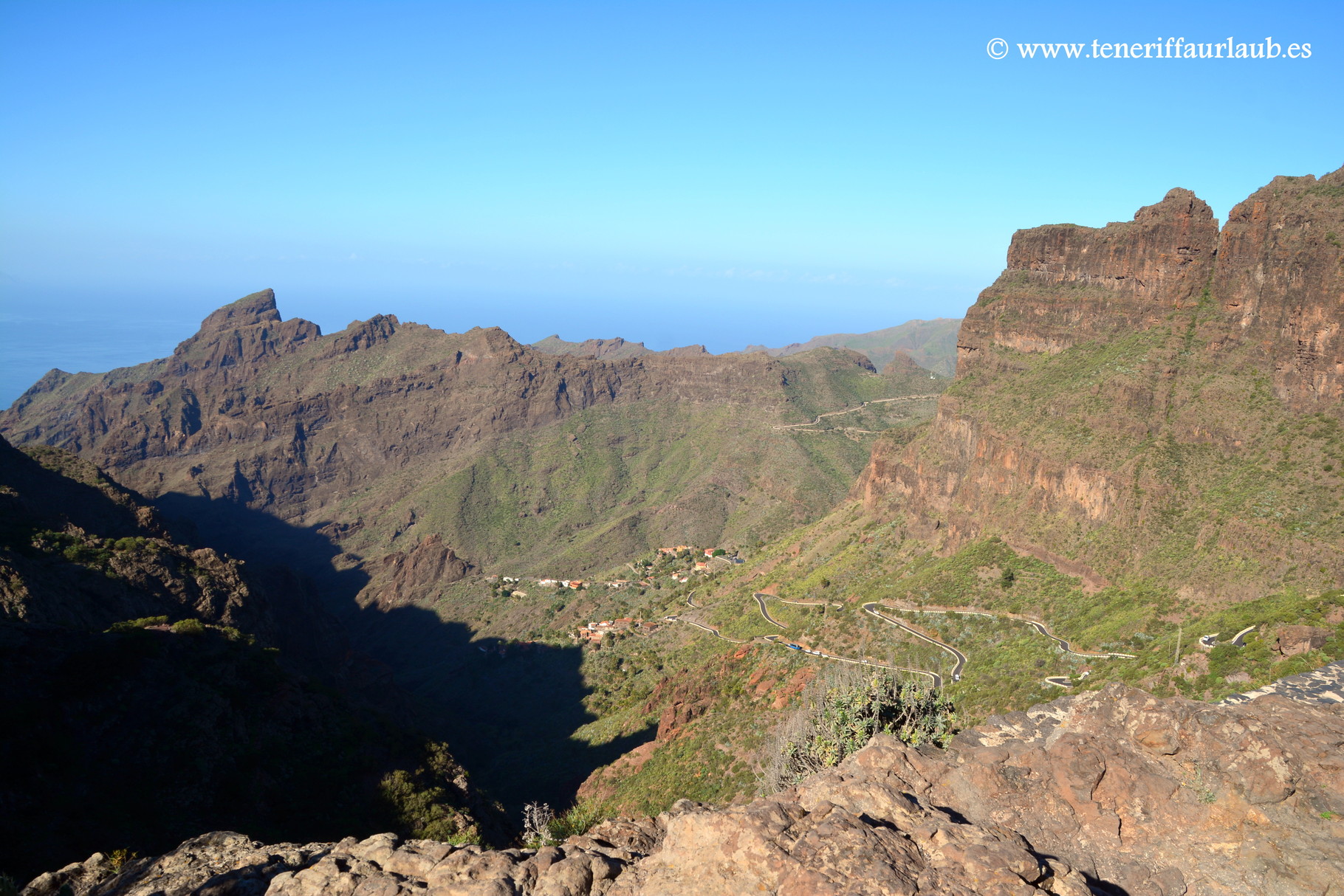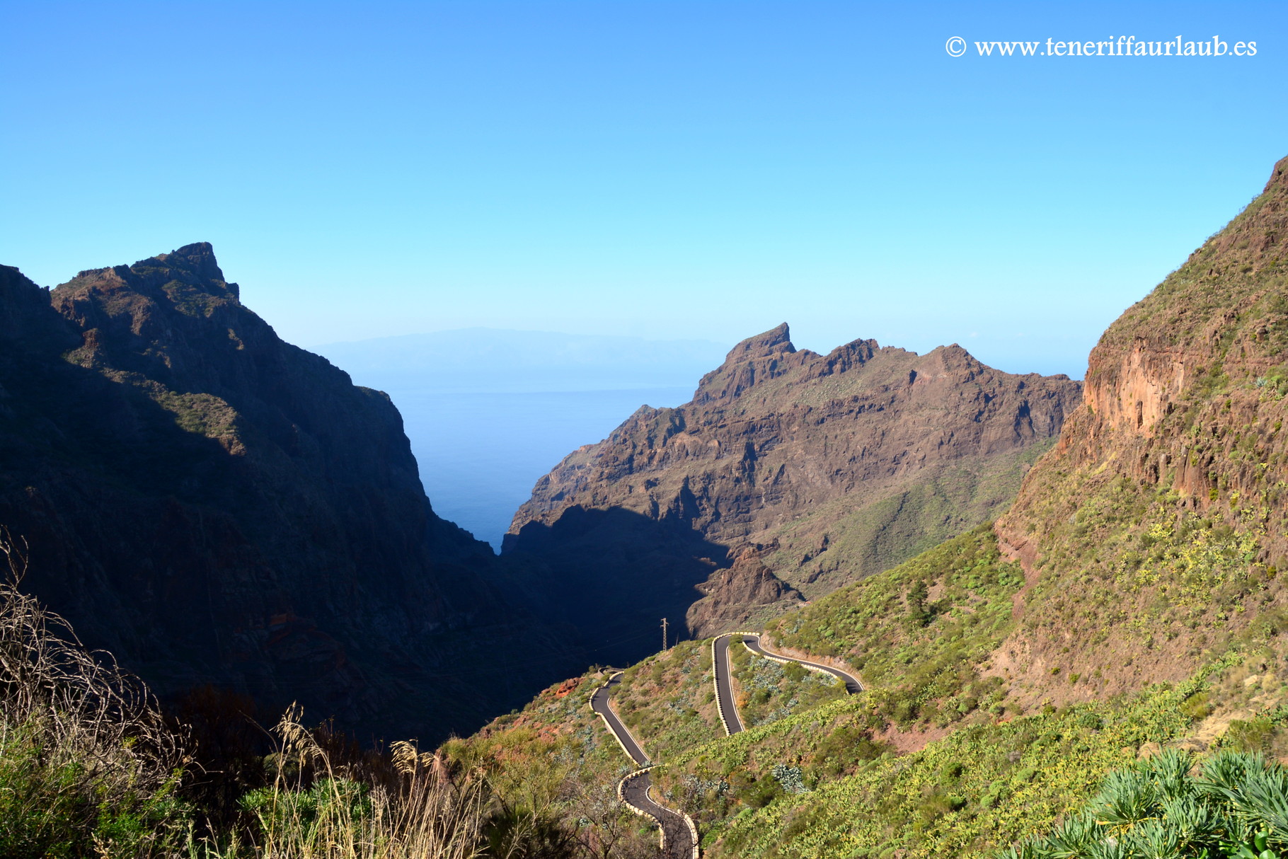 Ein besonderes Highlight ist die Masca-Schlucht (Barranco de Masca), deren Einstieg sich in der Nähe von Fidels Bar befindet. Die Wanderung zum Meer erfordert gutes Schuhwerk und eine solide Kondition. Obwohl der Weg überwiegend bergab führt, dauert die Strecke ungefähr 3 Stunden. Vor der Wanderung sollte unbedingt ein Wassertaxi reserviert werden. Ohne das Taxi müsste man den gleichen Weg wieder bergauf zurücklaufen, was deutlich anstrengender ist.