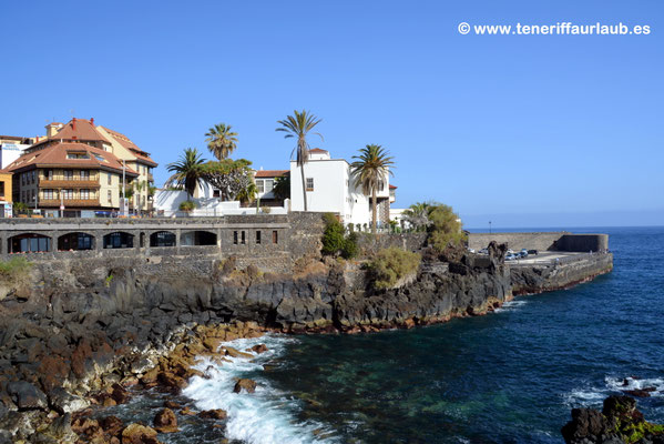 Vom Kai aus bietet sich ein herrlicher Blick über die Stadt und das beeindruckende Panorama der meist in Wolken gehüllten Berge im Hintergrund. Dominant erhebt sich dort der Pico del Teide, mit 3.715 Metern der höchste Gipfel Spaniens und ein Wahrzeichen Teneriffas. Das grüne Orotava-Tal, das sich von hier aus bis in die Hänge zieht, verdankt seine üppige Vegetation genau diesen Wolken, die regelmäßig Feuchtigkeit bringen. Ein faszinierender Kontrast zum trockenen, kargen Süden der Insel. Auch in der Stadt selbst ist der vulkanische Ursprung Teneriffas vielerorts sichtbar. Wer entlang der Strandpromenade spaziert, stößt immer wieder auf dunkles Vulkangestein, sei es als natürliches Element oder als Baumaterial. Besonders eindrucksvoll ist die kleine Kapelle San Telmo, die direkt auf einer schwarzen Lavaformation erbaut wurde. Solche Details machen den Ort nicht nur landschaftlich reizvoll, sondern auch geologisch und historisch spannend.