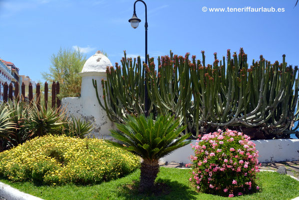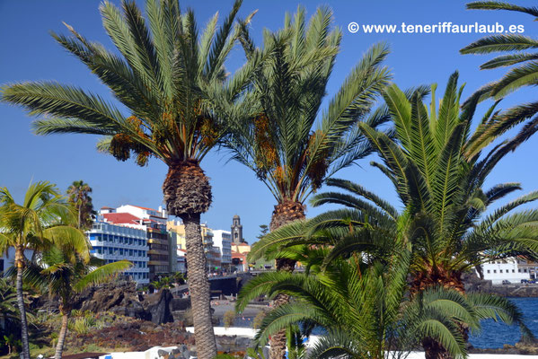Während einer entspannten Pause unter den schattigen Palmen auf der Plaza Iglesia können Sie mit etwas Glück spannende Beobachtungen machen. Ab und zu fallen zernagte Früchte aus den Bäumen, und über den Platz fliegen pfeilschnelle, leuchtend grüne Papageien. Diese wilden Mönchsittiche sind eine besondere Attraktion, sie haben sich hier angesiedelt und ziehen in den Palmen sogar ihre Jungen groß. Der Ort bietet zudem zwei leicht erreichbare Strände, die zum Baden einladen. Playa Jardín besticht durch seine üppige Blütenpracht und den beeindruckenden Blick auf den Teide. Direkt am Rande dieses Strandes befindet sich das Castillo San Felipe, eine ehemalige Verteidigungsfestung, die direkt an der Küste thront und einen Einblick in die Geschichte der Stadt bietet. Der Playa de Martiánez ist ebenfalls sehr beliebt und bietet schöne Badegelegenheiten sowie eine lebhafte Promenade. Diese Kombination aus Natur, Strand und Kultur macht den Ort zu einem besonders vielseitigen Reiseziel im Norden Teneriffas.