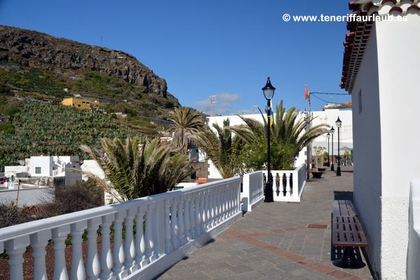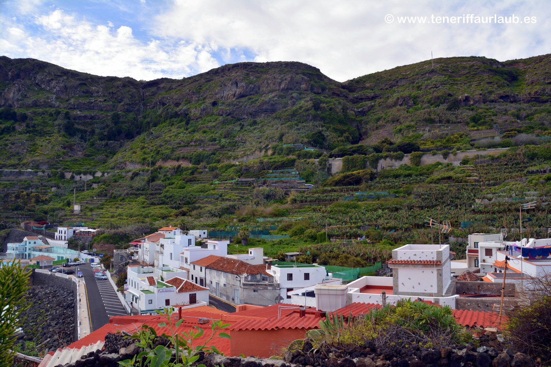 Im oberen Teil von Las Aguas finden sich besonders schöne, teils historische Häuser mit viel Charakter. Die Architektur ist oft schlicht, aber einzigartig, mit traditionellen Holzbalkonen, pastellfarbenen Fassaden und kleinen Details, die vom ländlichen Teneriffa vergangener Zeiten erzählen. Ein zentraler Treffpunkt ist die kleine Kirche, die zusammen mit dem Platz davor eine ruhige, fast meditative Atmosphäre ausstrahlt. Wer den kurzen Weg hinter die Kirche nimmt, wird mit einem spektakulären Ausblick belohnt. Von hier aus reicht der Blick weit über das tiefblaue Meer und die dramatische Nordküste, von Puerto de la Cruz bis hinüber nach Mesa del Mar und El Pris. Besonders bei Sonnenuntergang ist dieser Ort magisch.