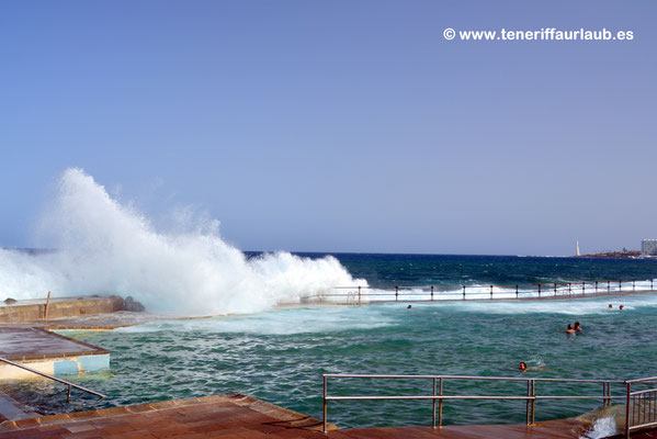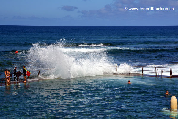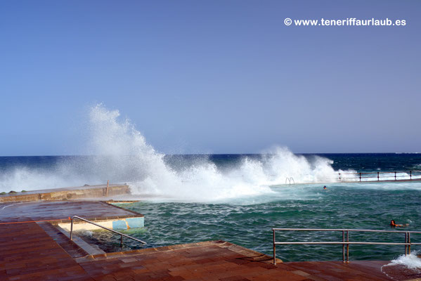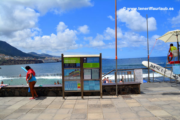 Die Piscina ist nicht nur ein Felsloch mit Wasser, die Anlage wurde für Badegäste ausgeschnitten und an mehreren Stellen mit Treppen, Handläufen und Sitzflächen versehen. An zentralen Zugängen gibt es Duschen und Einrichtungen für Besucher, und es besteht in vielen natürlichen Bädern von Teneriffa eine Regelung zur saisonalen Überwachung durch Rettungspersonal. In Punta del Hidalgo gibt es Angaben zu beaufsichtigten Bereichen und zu barrierefreien Zugängen für Menschen mit eingeschränkter Mobilität. Dennoch sind die Wege zum Wasser stellenweise uneben, schnelles Umziehen und rutschfeste Schuhe sind empfehlenswert. Die Piscina eignet sich hervorragend zum Schnorcheln, das ständig durchströmte Meerwasser ist oft klar genug, um kleine Fische und Seegraswiesen zu beobachten. Gleichzeitig ist die offene Küste nie weit entfernt, bei starkem Wellengang können Brandungswellen in die Becken drücken und Strömungen entstehen. Es kommt gelegentlich zu kurzfristigen Sperrungen oder Warnungen, zum Beispiel nach Funde von Verunreinigungen im Wasser, in der Vergangenheit wurde die Piscina zeitweise geschlossen, bis Untersuchungen und Reinigungsmaßnahmen erfolgt waren. Achten Sie vor dem Baden auf Warnflaggen, Hinweise der örtlichen Aufsicht und aktuelle Meldungen der Gemeinde oder der lokalen Presse, und unterschätzen Sie nicht die Kraft des Atlantiks: auch in geschützten Becken kann es bei hoher See gefährlich werden.