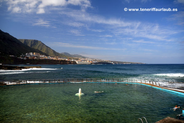 Punta del Hidalgo liegt an der Nordostküste von Teneriffa, im Einflussbereich des Anaga-Gebirges, und gehört verwaltungstechnisch zur Region von La Laguna. Die Piscina befindet sich direkt an der Ortspromenade des gleichnamigen Fischerdorfes, die Szenerie verbindet Meer, Fels und die niedrigen Häuser der Küstenbebauung. Durch die Lage am Übergang vom Gebirge zum Meer treten hier oft interessante Wetter- und Lichtverhältnisse auf, außerdem beginnen in der Nähe mehrere Küstenwege, die sich ins Anaga-Naturschutzgebiet hineinziehen.