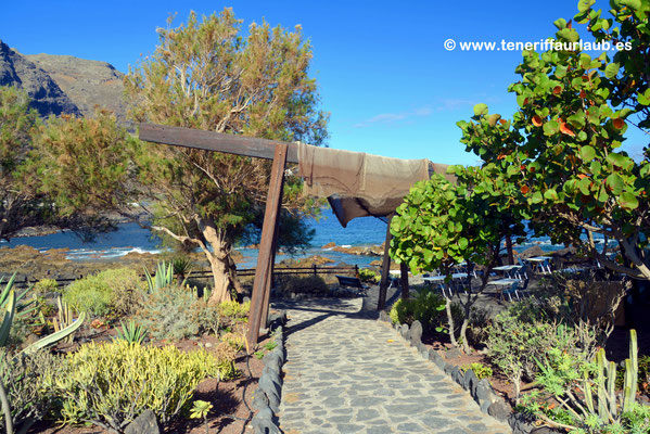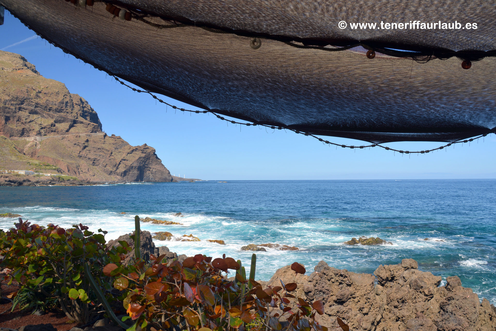 Ein Spaziergang entlang des Strandes lohnt sich zu jeder Jahreszeit. Dabei schweift der Blick über das imposante Bergmassiv des Tenogebirges, während in der Ferne einige Windräder ruhig ihre Runden drehen. Der Kontrast zwischen der wilden Natur der Atlantikküste, den mächtigen Bergen und den modernen Windrädern schafft eine faszinierende Kulisse, die sowohl Ruhe als auch Abenteuer vermittelt. Für das leibliche Wohl ist am Playa de las Arenas ebenfalls gesorgt. Direkt am Strand befindet sich ein kleiner Kiosk, der kalte Getränke, Bocadillos und andere Snacks anbietet, ideal für eine kleine Stärkung zwischendurch. Am Ende des Strandes lädt zudem ein gemütliches Restaurant zum Verweilen ein. Unter einem schattenspendenden Fischernetz genießen Besucher kanarische Spezialitäten und gleichzeitig den herrlichen Blick aufs Meer. So lässt sich ein Tag am Strand entspannt abrunden.
